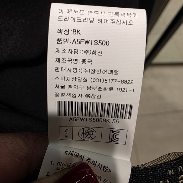 세탁방법 및 취급시 주의사항 : 드라이크리닝