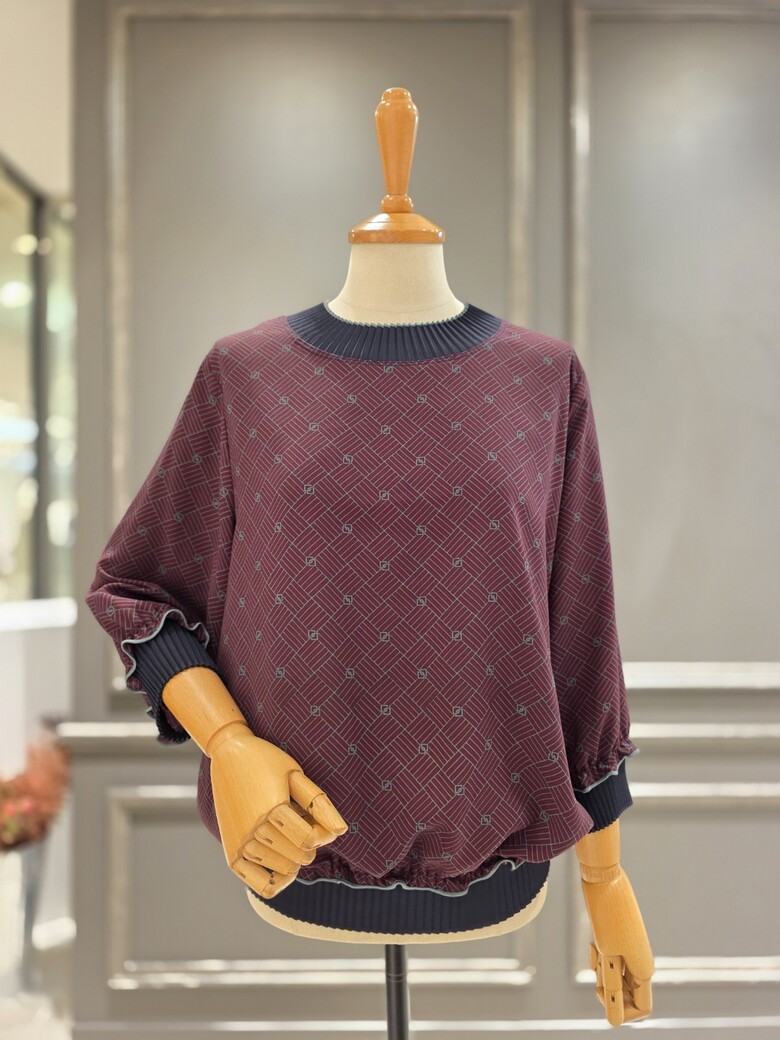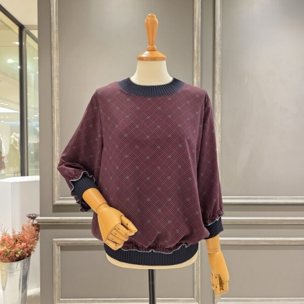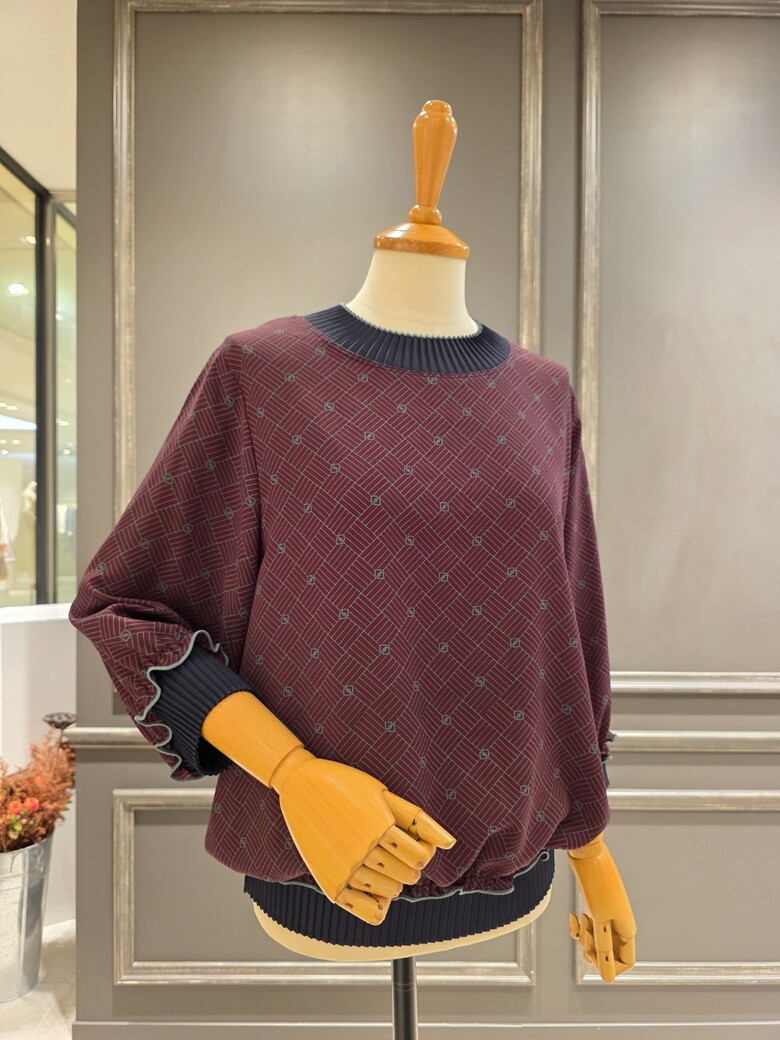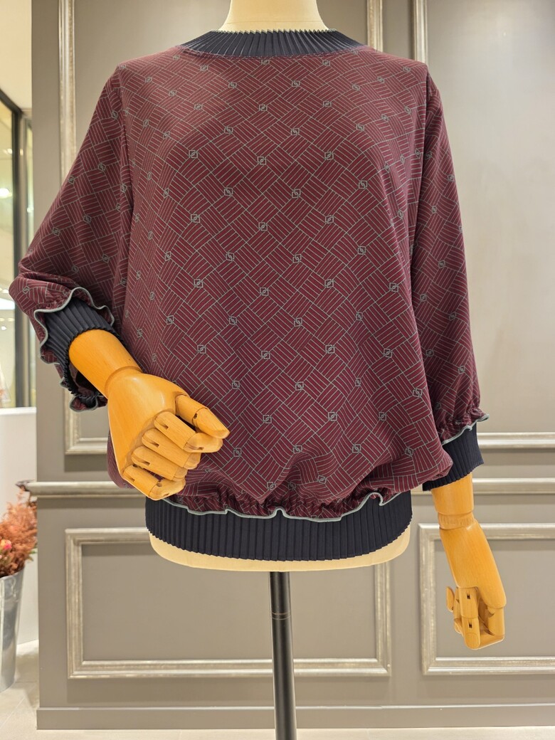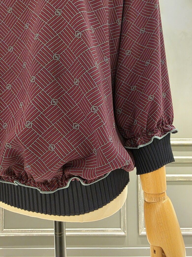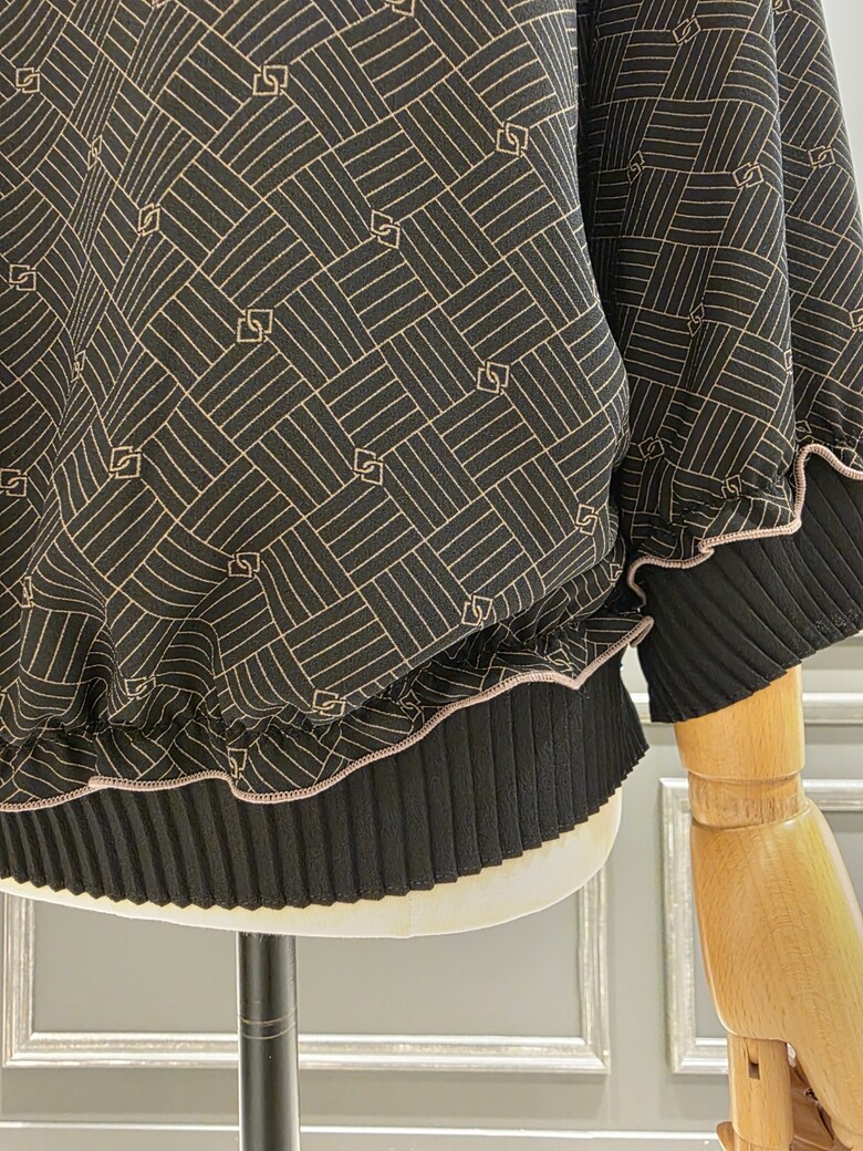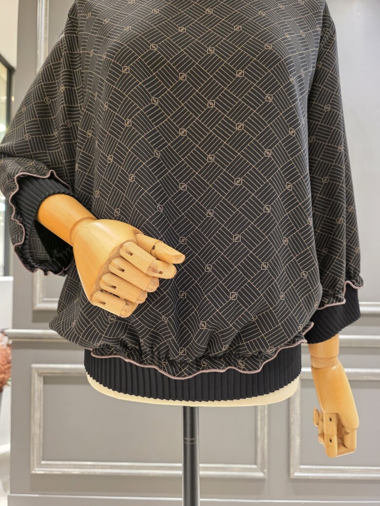 A58WBL530_패턴 주름 맨투맨 블라우스