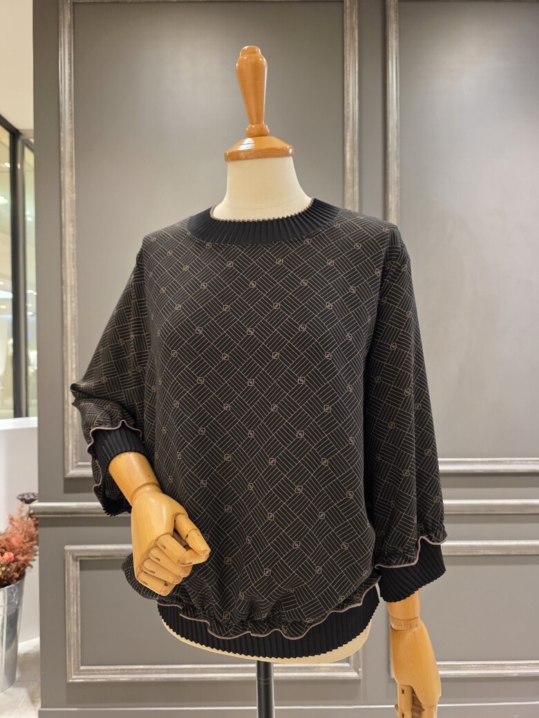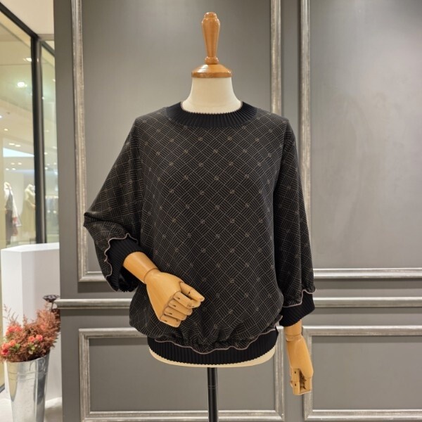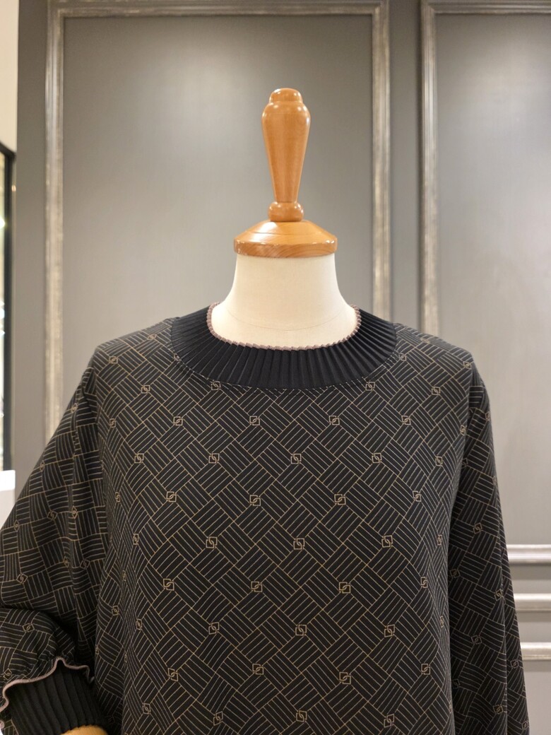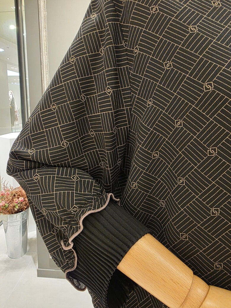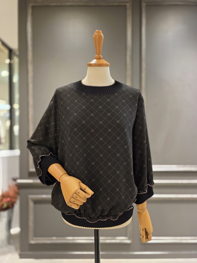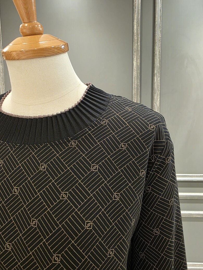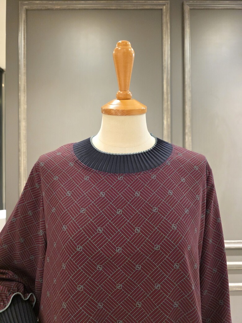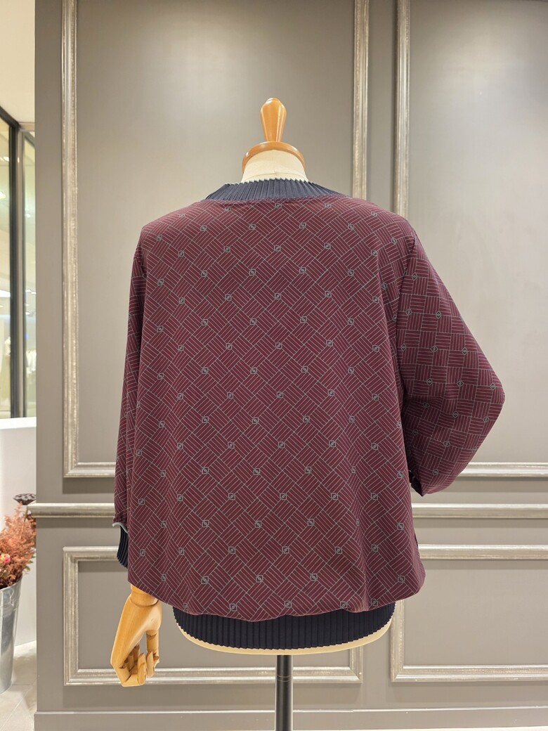A58WBL530_패턴 주름 맨투맨 블라우스