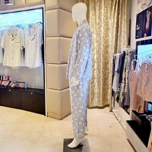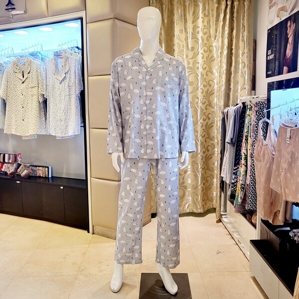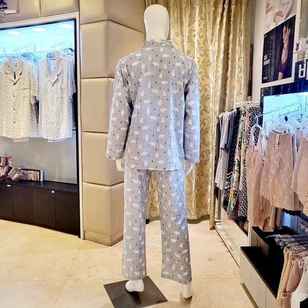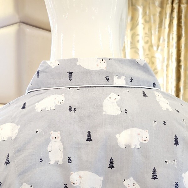 기본 파자마 카라 디자인이며 넉넉한 피팅감으로 편하게 착용할 수 있습니다.