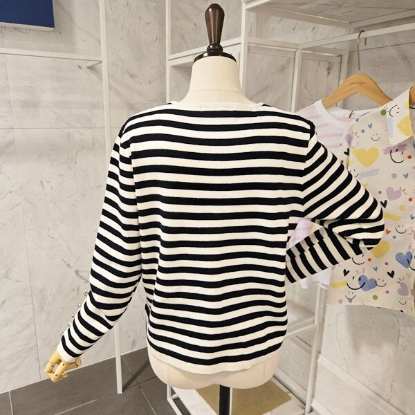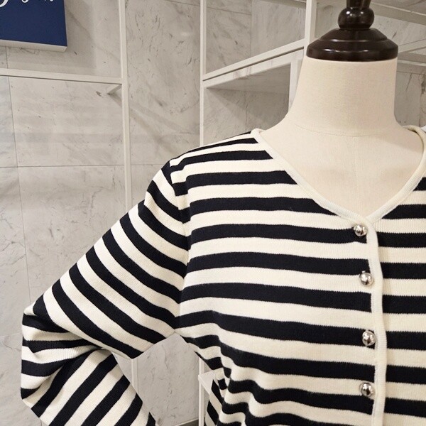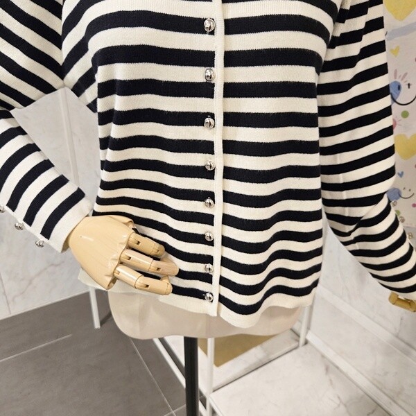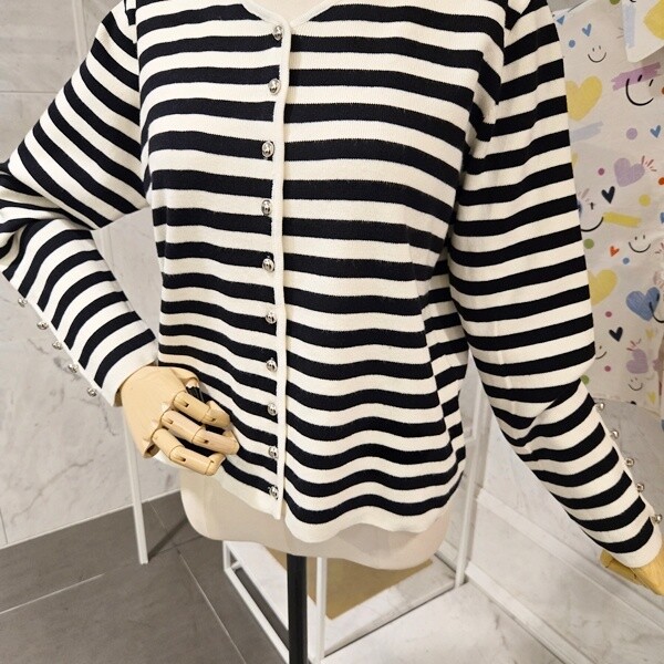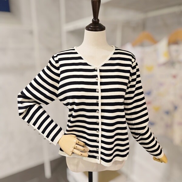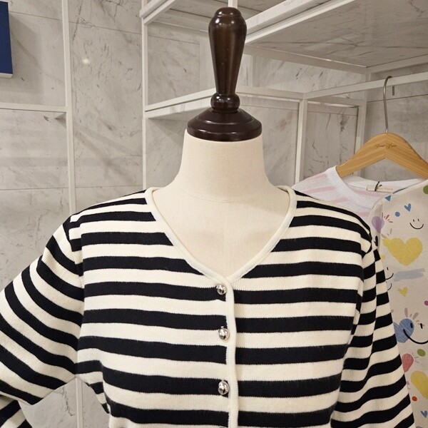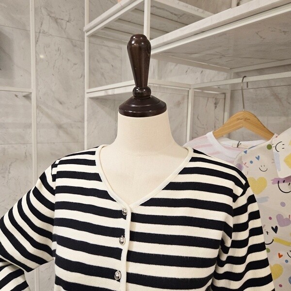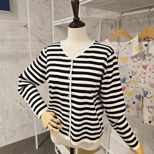 PF5CCA001AP_장식 스트라이프 브이넥 가디건