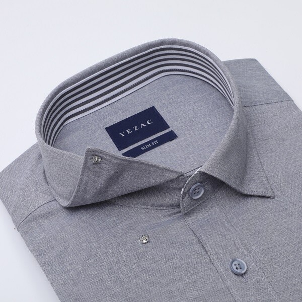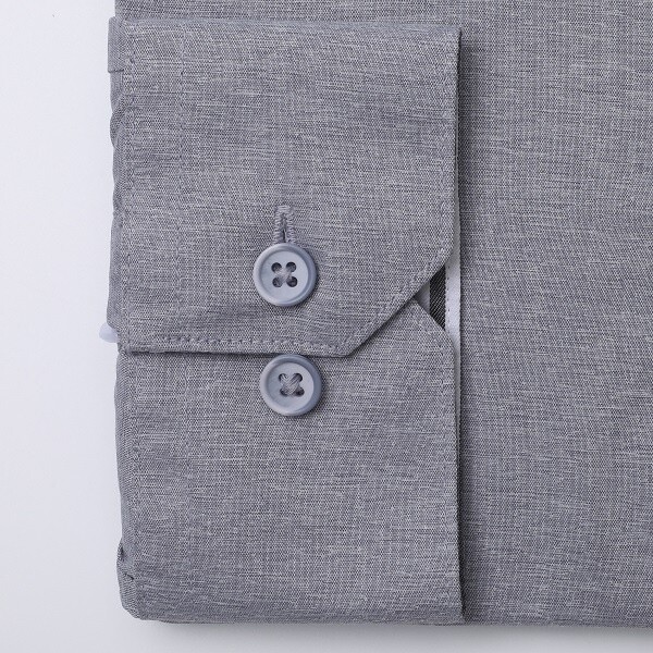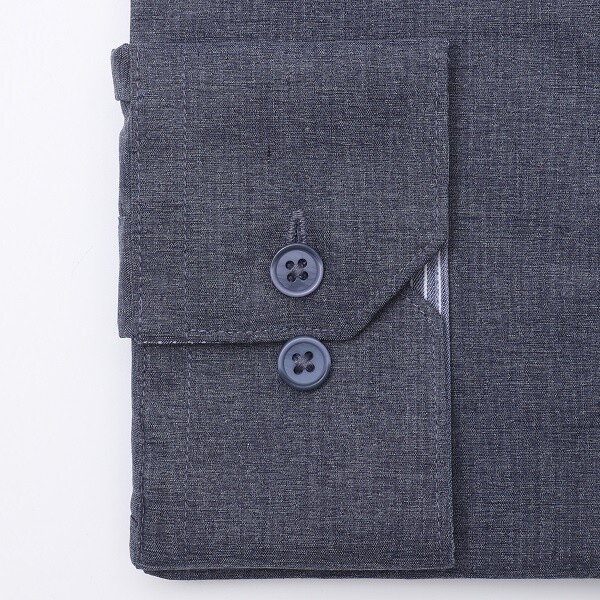 착용감이 좋으며 카치온 소재 특성의 은은한 투톤 컬러감이 멋스러우며 카라와 카우스 안쪽에 배색을 넣고 카라에 스냅을 달아 놓은 슬림핏 긴소매