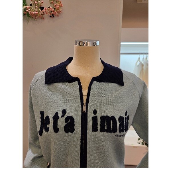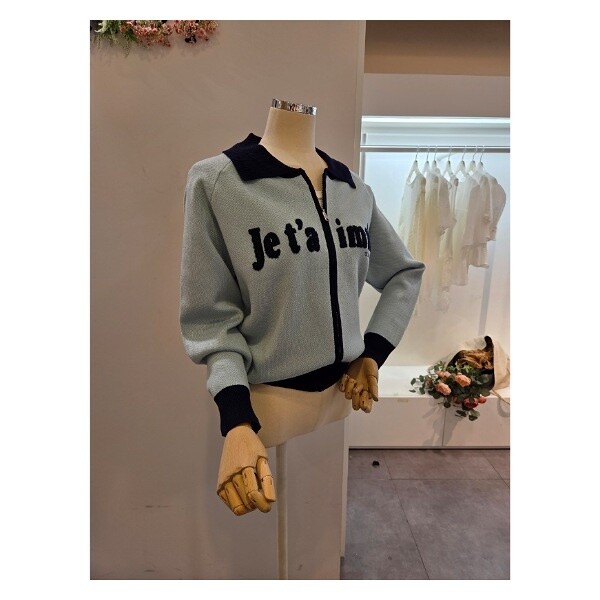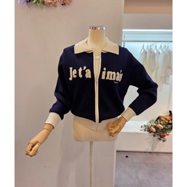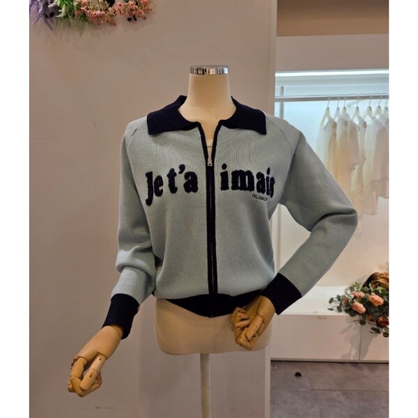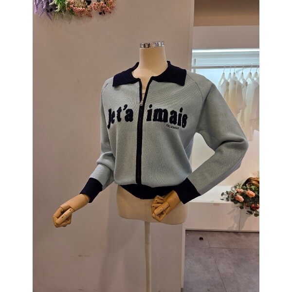 CP7WKC09_영문 레터링 배색 집업 가디건