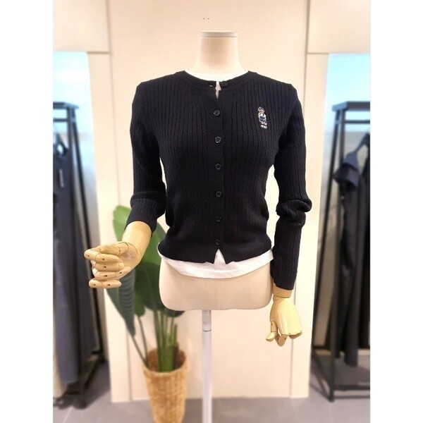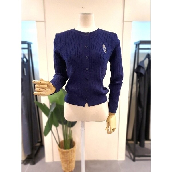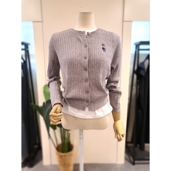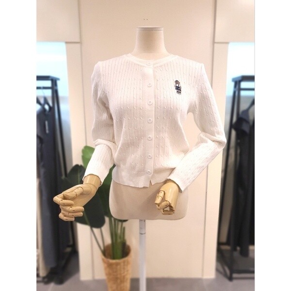 곰돌이 자수 포인트의 꽈배기 가디건입니다. 기본 디자인에 정사이즈입니다.