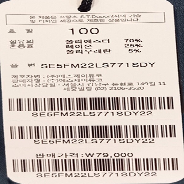 제품소재 : 레이온24%,폴리에스터71%,폴리우레탄5%