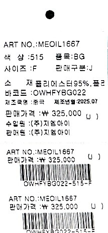 | 1. 종류 | 오일릴리 쇼 크로스바디 OWHFYBG022-515 |