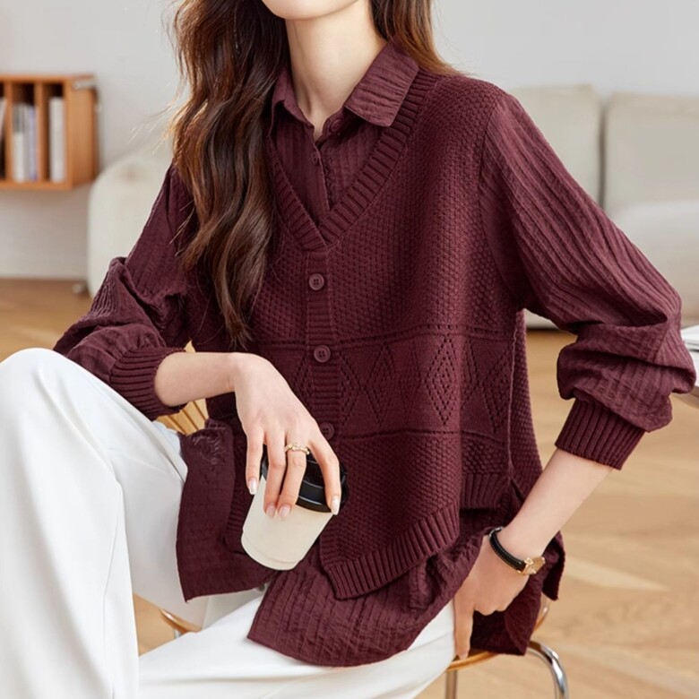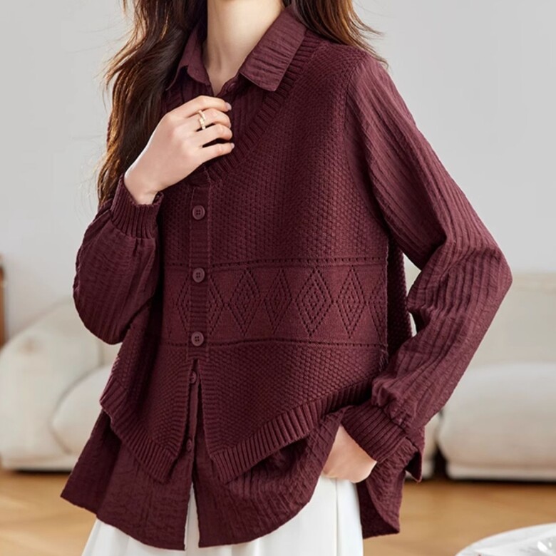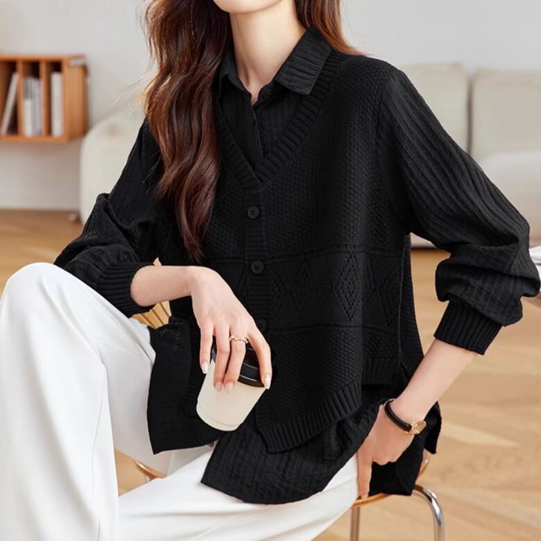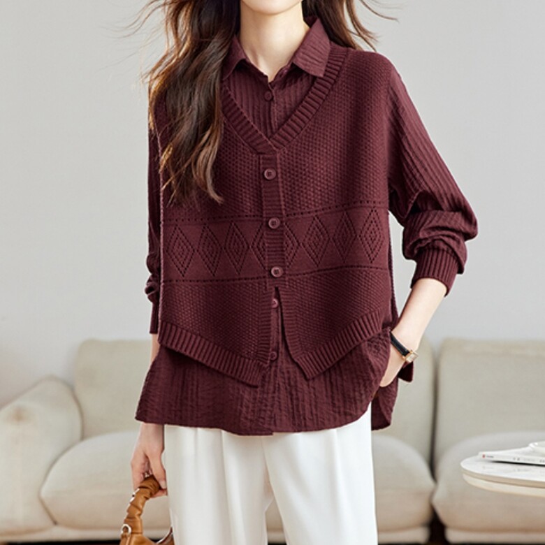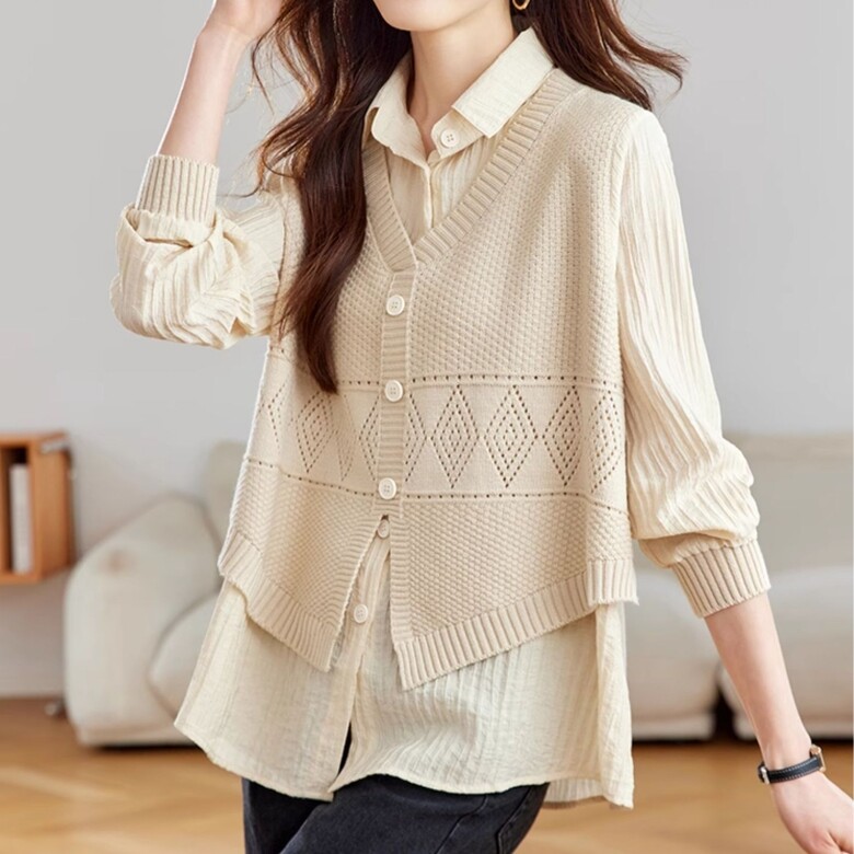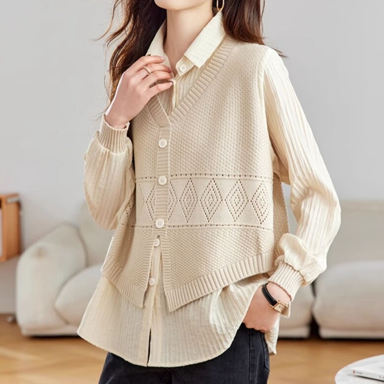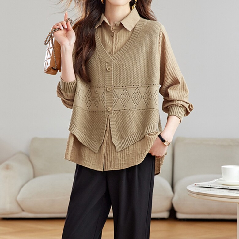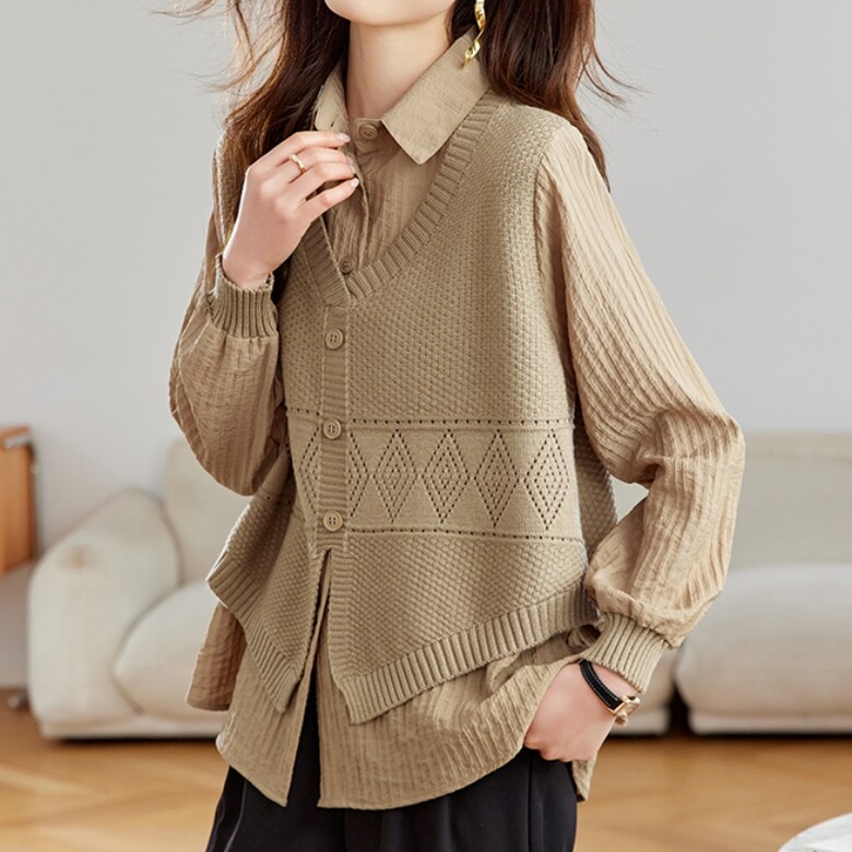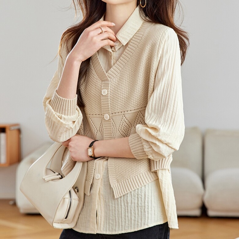 니트 베스트 페이크 레이어 블라우스_250826_JY16