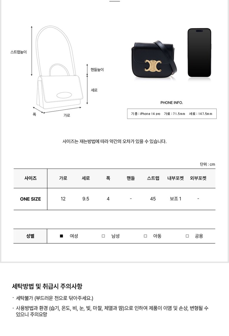 (셀린느) 10I513DPV 38NO FW25 여성 트리옹프 미니 크로스백
