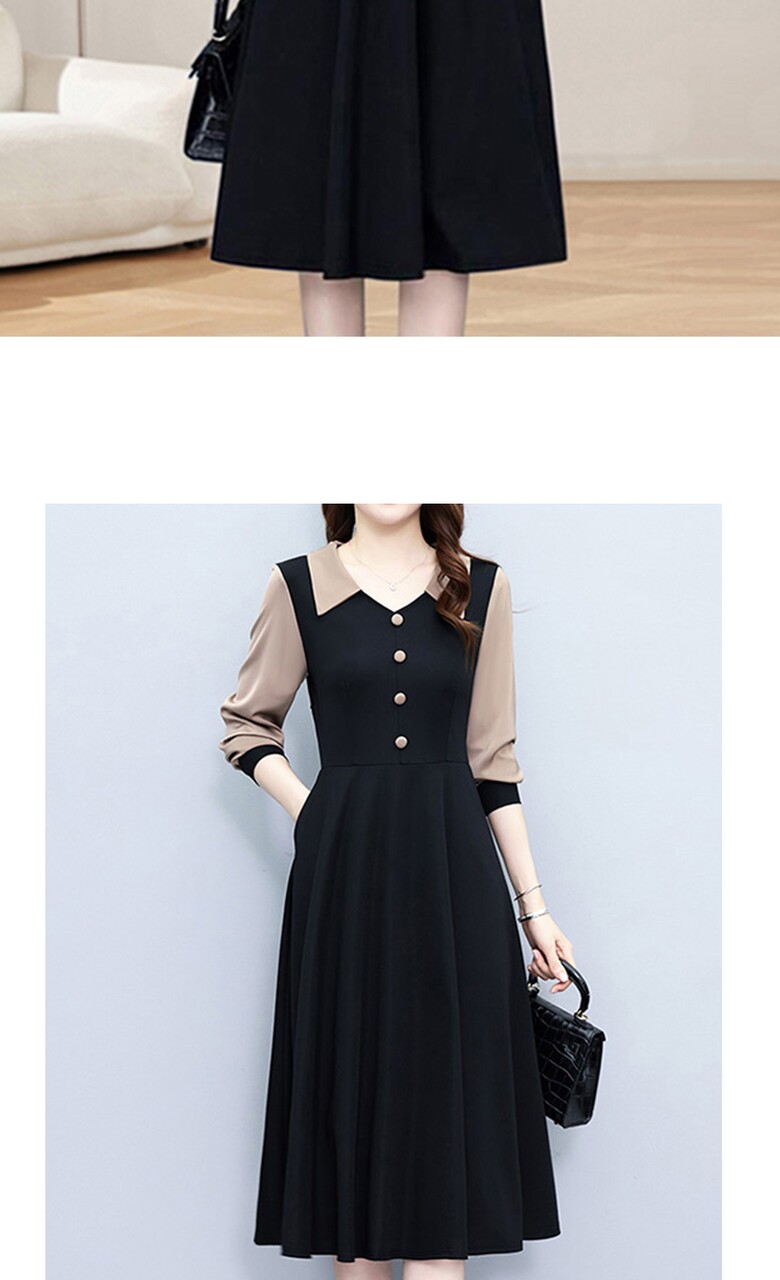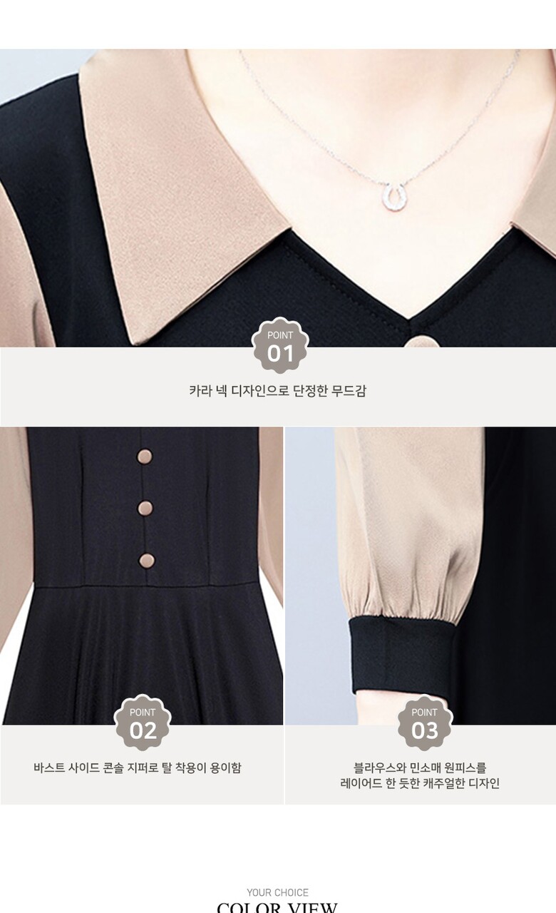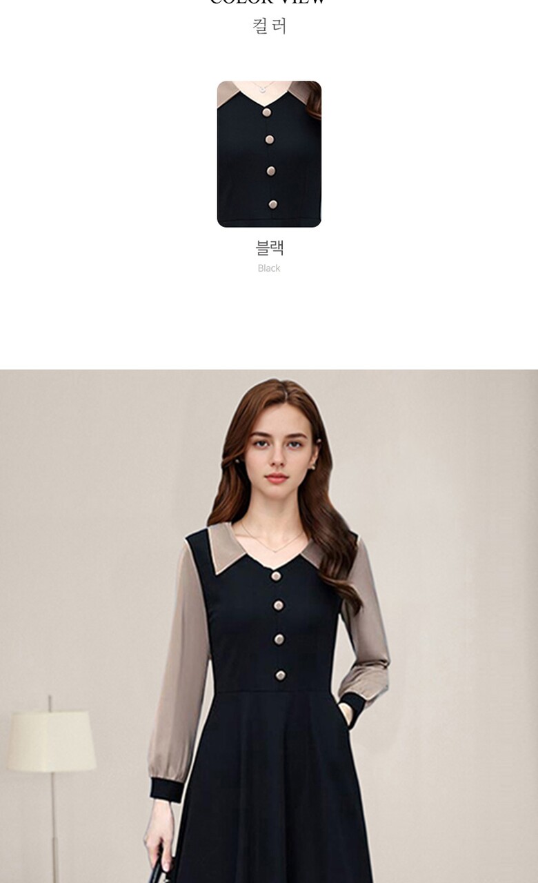 [비바로그] 제르 단추 포인트 배색 원피스