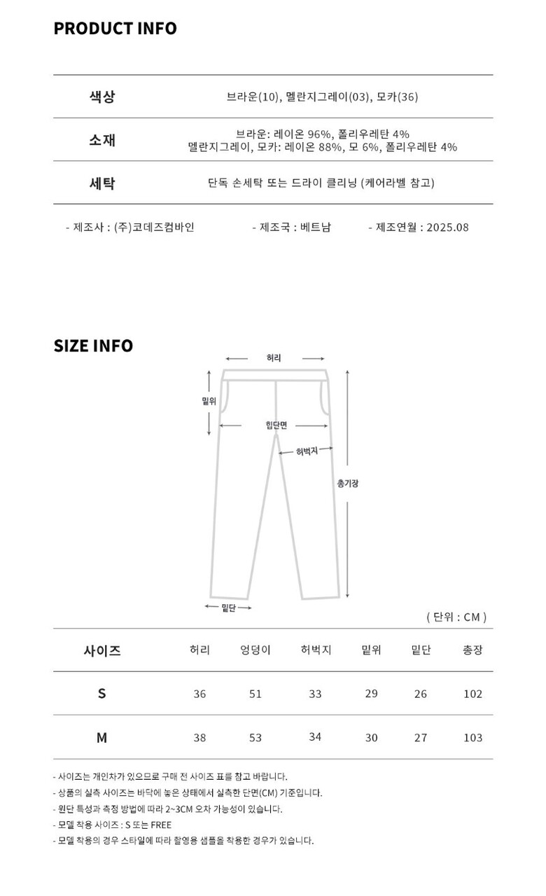 2. 색상 | 멜란지그레이(03),브라운(10),모카(36) |