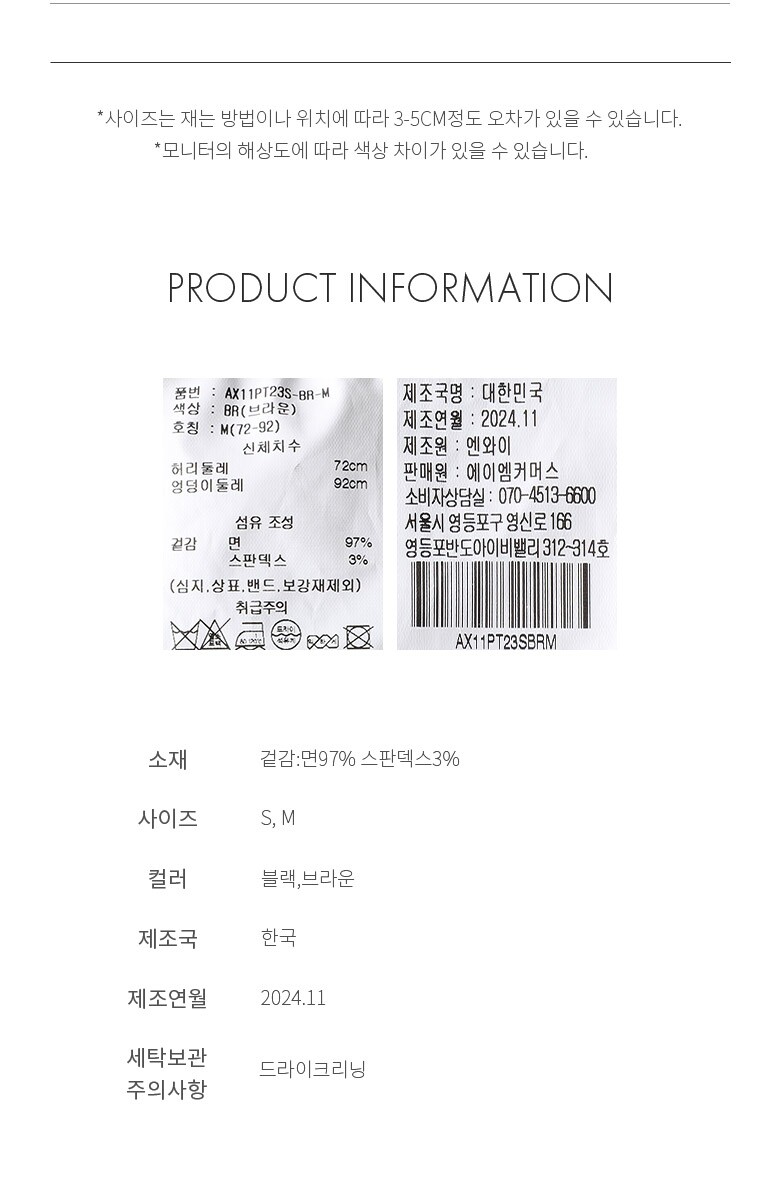 6. 세탁방법 및 취급시 주의사항 상세페이지및 라벨참조