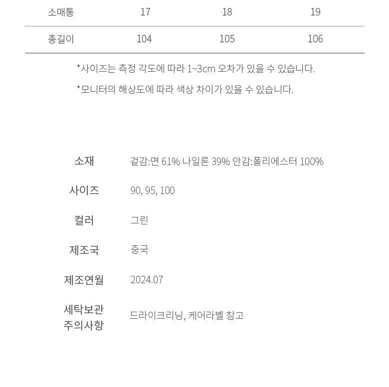 6. 세탁방법 및 취급시 주의사항 상세페이지및 라벨참조