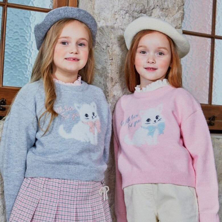 [로엠걸즈] 고양이 자가드 스웨터 RGKA24W5P