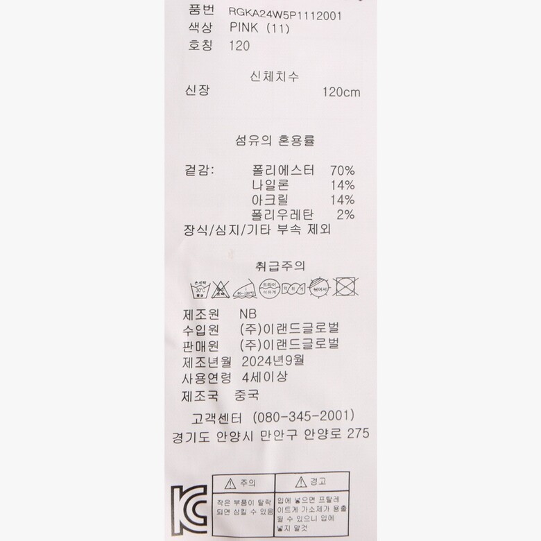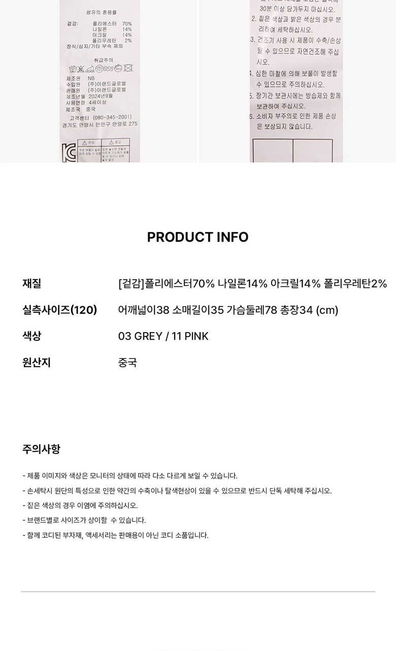 6. 세탁방법 및 취급시 주의사항 | 상품상세참조 |