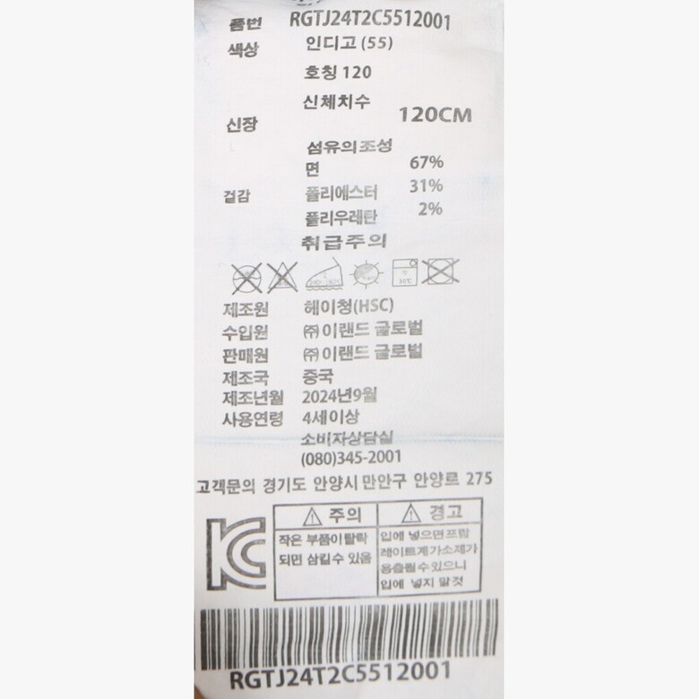 1. 제품 소재 (섬유의 조성 또는 혼용률을 백분율로 표시, 기능성인 경우 성적서 또는 허가서) 상품상세참조