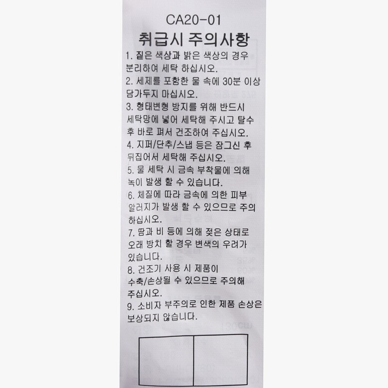 | 6. 세탁방법 및 취급시 주의사항 | 상품상세참조 |