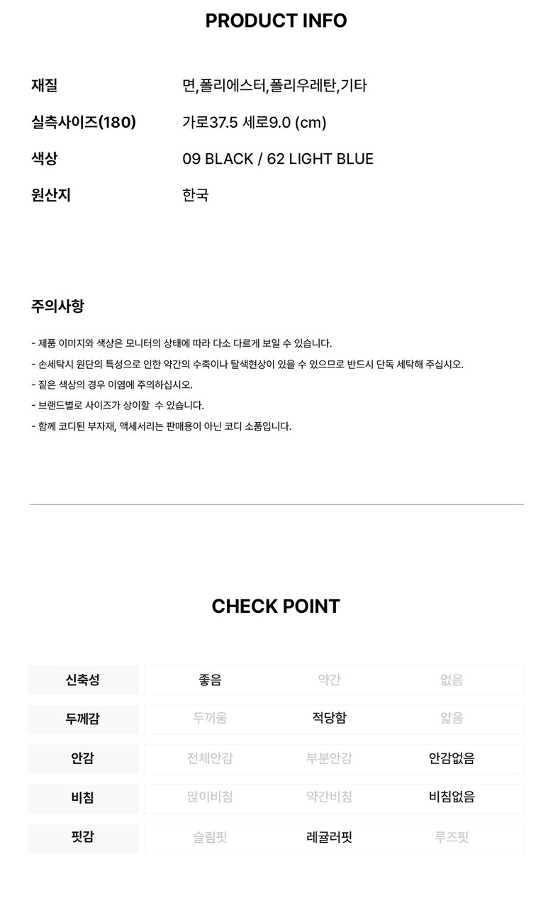 1. 제품 소재 (섬유의 조성 또는 혼용률을 백분율로 표시, 기능성인 경우 성적서 또는 허가서) | 상품상세참조 |