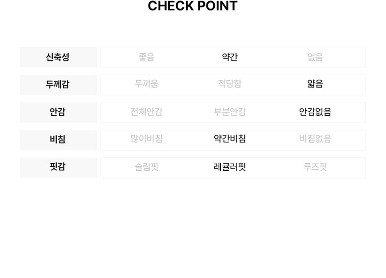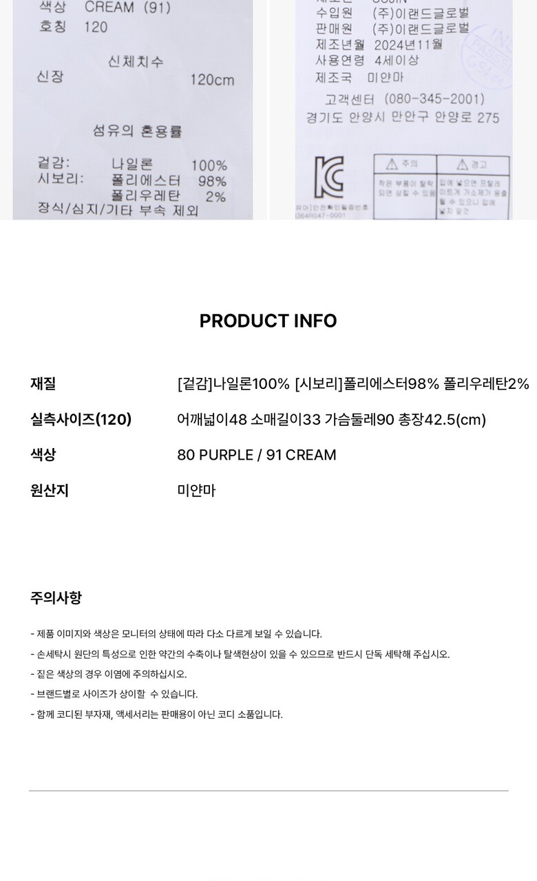1. 제품 소재 (섬유의 조성 또는 혼용률을 백분율로 표시, 기능성인 경우 성적서 또는 허가서) | 상품상세참조 |