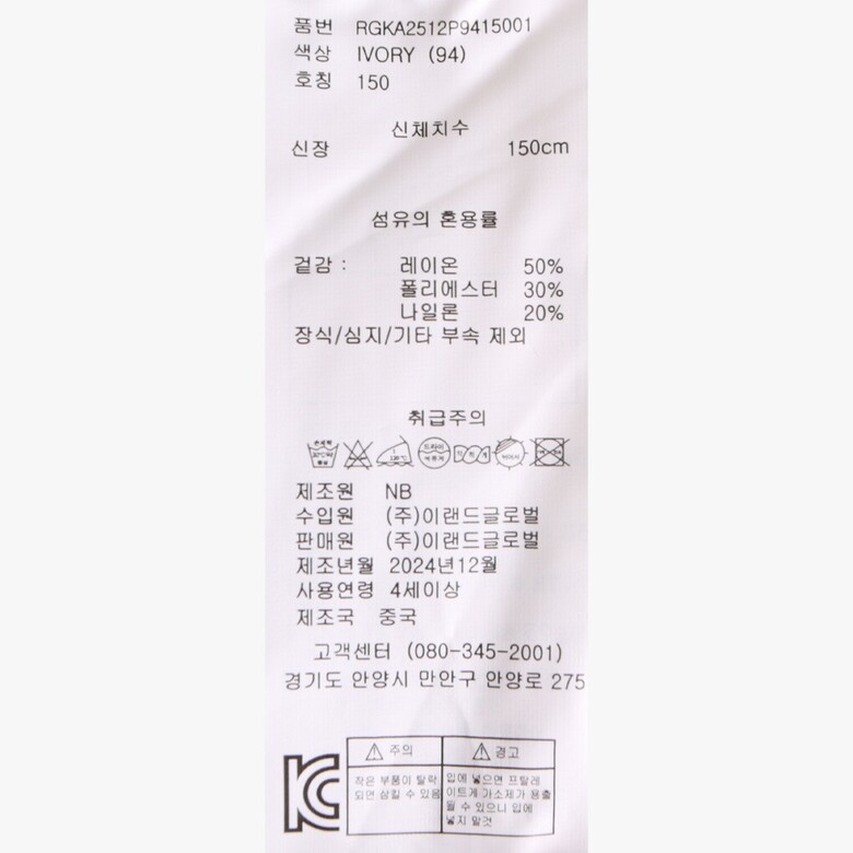 1. 제품 소재 (섬유의 조성 또는 혼용률을 백분율로 표시, 기능성인 경우 성적서 또는 허가서) 상품상세참조