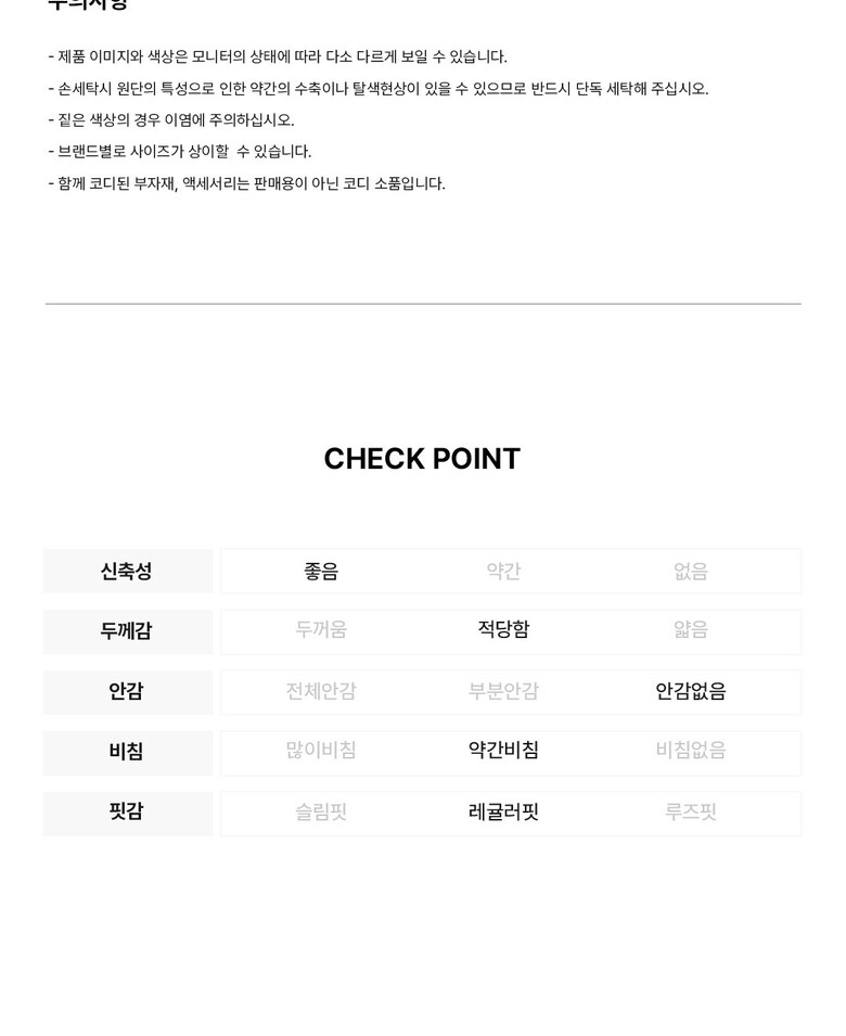 • 처음 배송된 상품상태와 다를 경우(세탁/착용 후 외출하신 경우) 반품이 불가합니다.