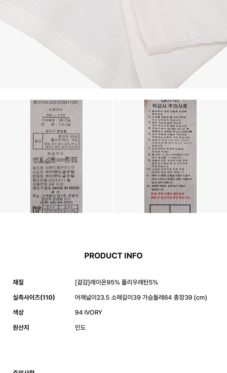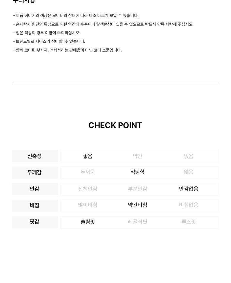 • 처음 배송된 상품상태와 다를 경우(세탁/착용 후 외출하신 경우) 반품이 불가합니다.