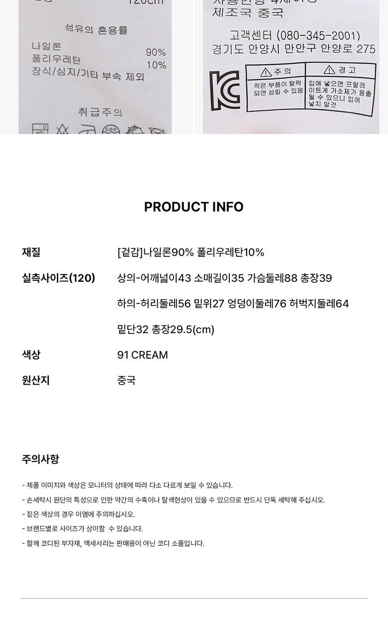 6. 세탁방법 및 취급시 주의사항 | 상품상세참조 |