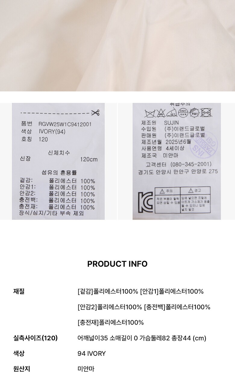 1. 제품 소재 (섬유의 조성 또는 혼용률을 백분율로 표시, 기능성인 경우 성적서 또는 허가서) 상품상세참조