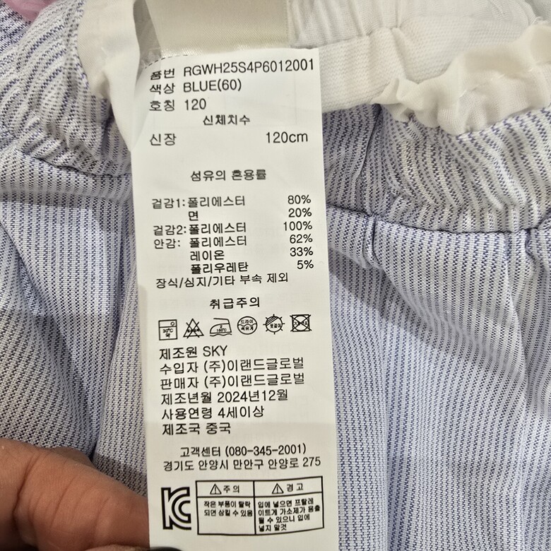 1. 제품 소재 (섬유의 조성 또는 혼용률을 백분율로 표시, 기능성인 경우 성적서 또는 허가서) 상품상세참조