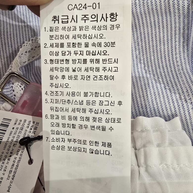 6. 세탁방법 및 취급시 주의사항 상품상세참조