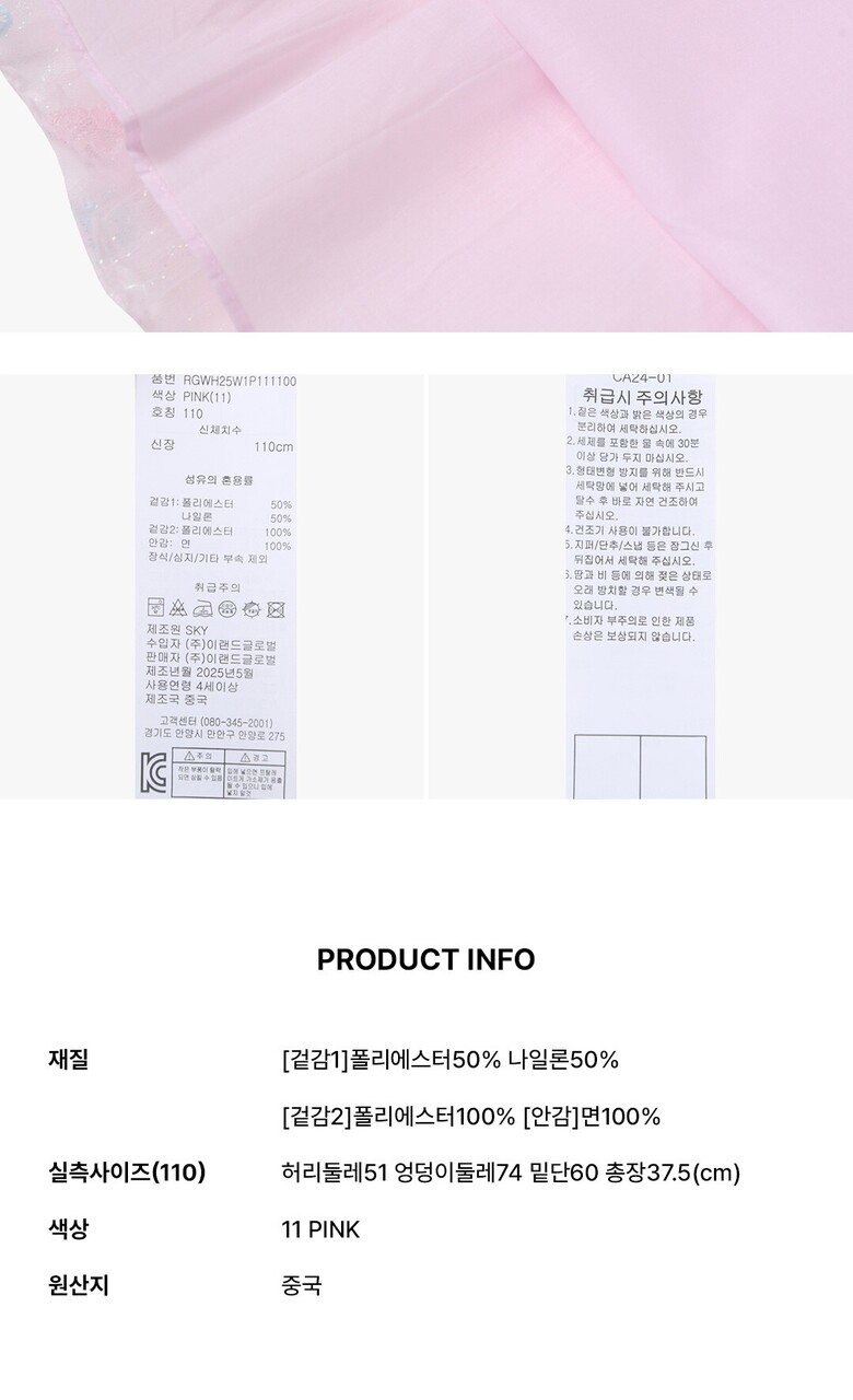 | 6. 세탁방법 및 취급시 주의사항 | 상품상세참조 |