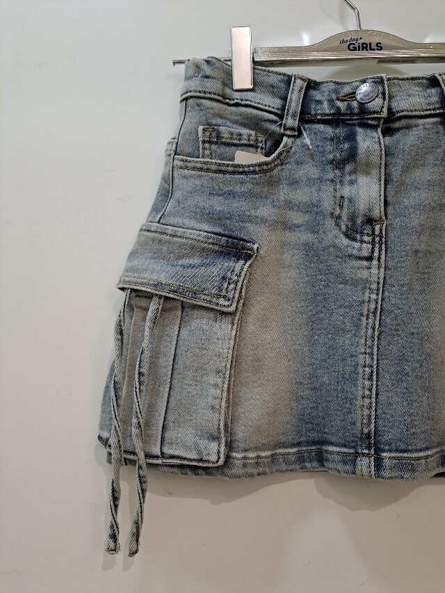 더데이걸|*|스트링카고 데님스커트|*|요즘 아이들이 좋아하는 스타일의 카고 데님 스커트 제품입니다.