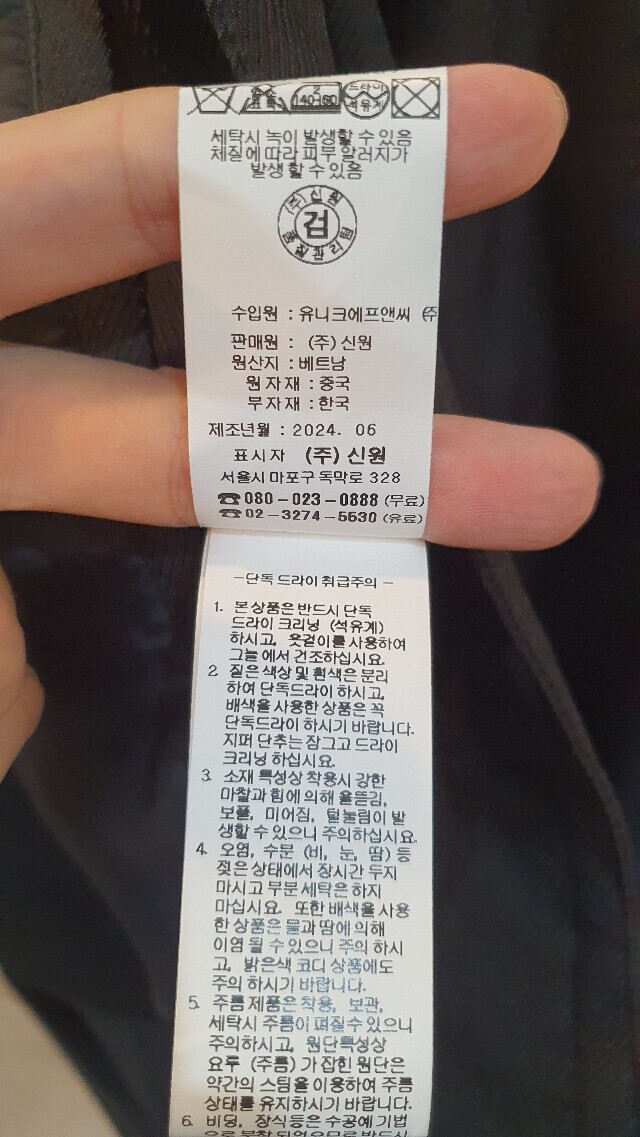 | 6. 세탁방법 및 취급시 주의사항 | 상품상세참조 |