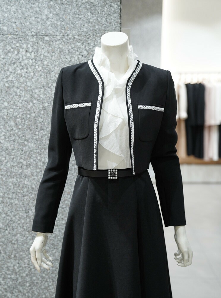 [지고트] 플로라 벨티드 핀턱 원피스 + 크롭 자켓 세트 (JR9A0OP802)