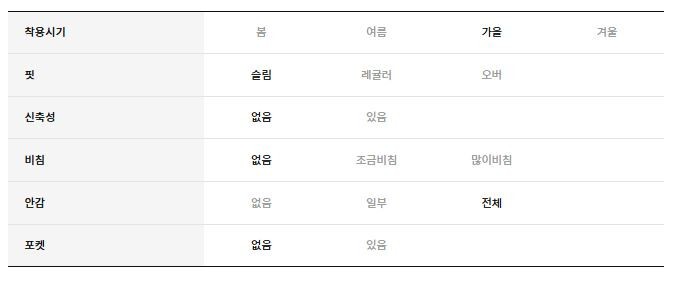 | 6. 세탁방법 및 취급시 주의사항 | 상품상세참조 |