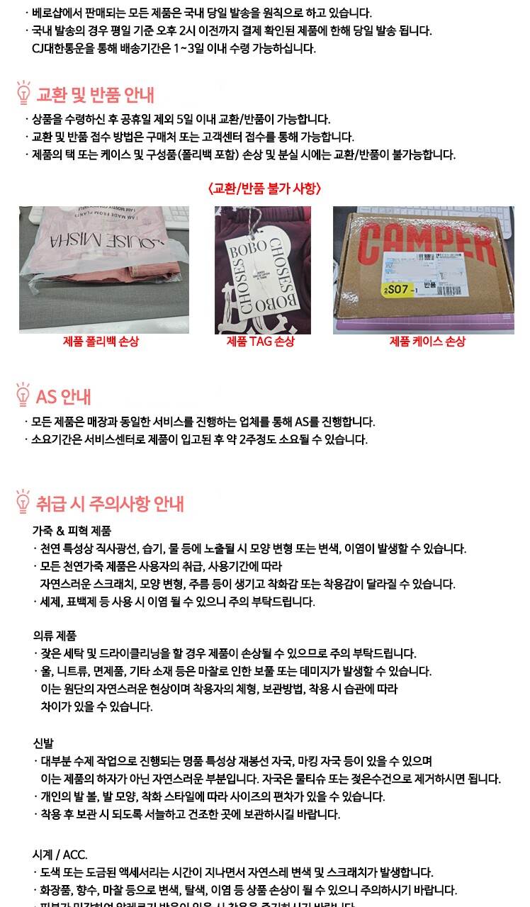 • 업체배송 상품은 해당 각 입점사의 교환정책에 따릅니다.