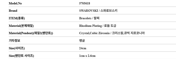 7. 주요 사양 | 로듐 도금 팔찌 |