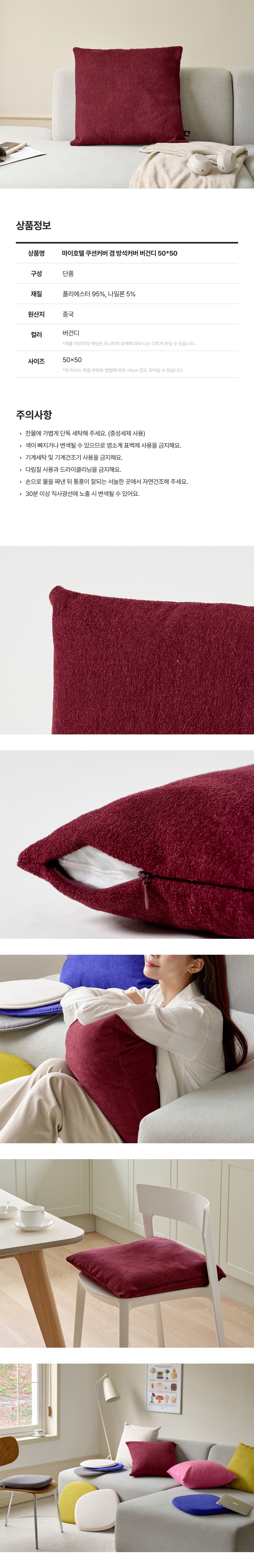 모던하우스 마이호텔 쿠션커버 겸 방석커버 버건디 50x50 EM0925068