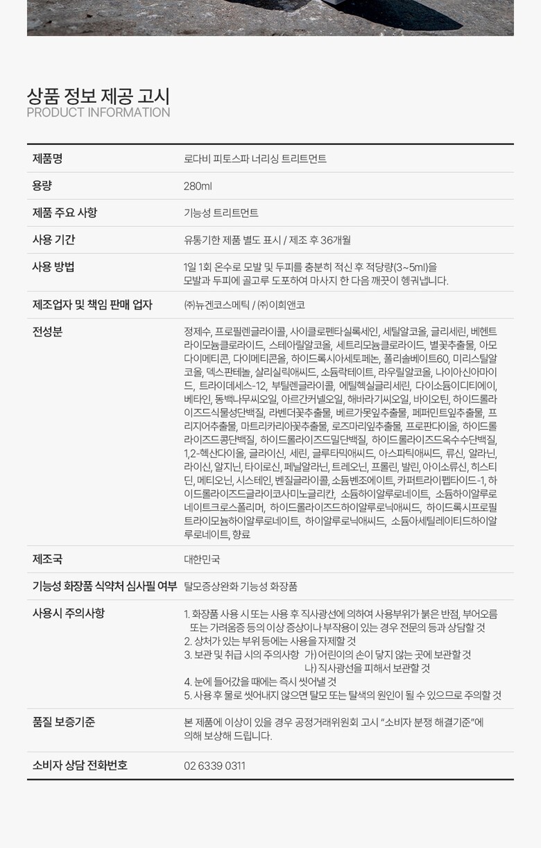 [ihee] 유기농 비건라인 로다비 피토스파 너리싱 트리트먼트 280ml