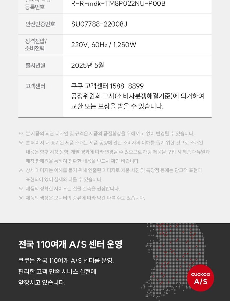 11. A/S책임자와전화번호 | 쿠쿠 1588-8899 |