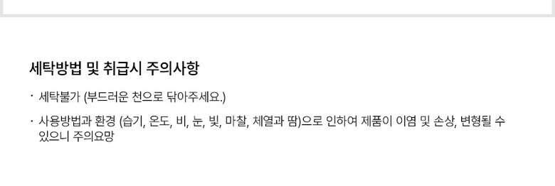 • 처음 배송된 상품상태와 다를 경우(세탁/착용 후 외출하신 경우) 반품이 불가합니다.