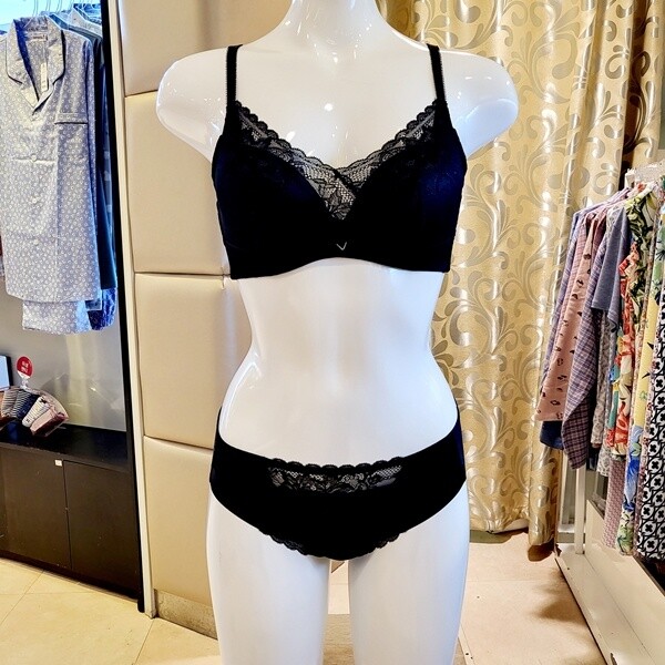 VBR9000EF_EF컵 애쉬메모리브라 헴팬티세트 블랙