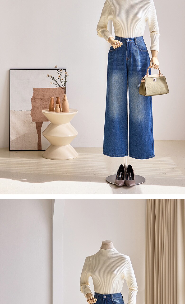 [55~77]뒷포켓 워싱 와이드 데님 팬츠_T2509DP033C