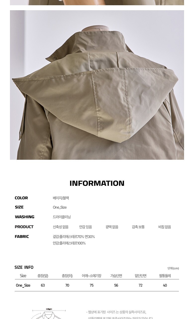 1. 제품 소재 (섬유의 조성 또는 혼용률을 백분율로 표시, 기능성인 경우 성적서 또는 허가서) | 겉감:폴리에스테르70% 면30% 안감:폴리에스테르100% |