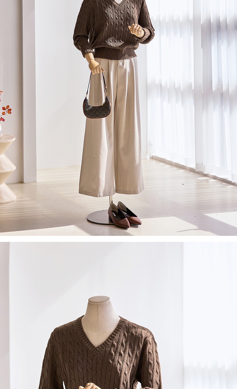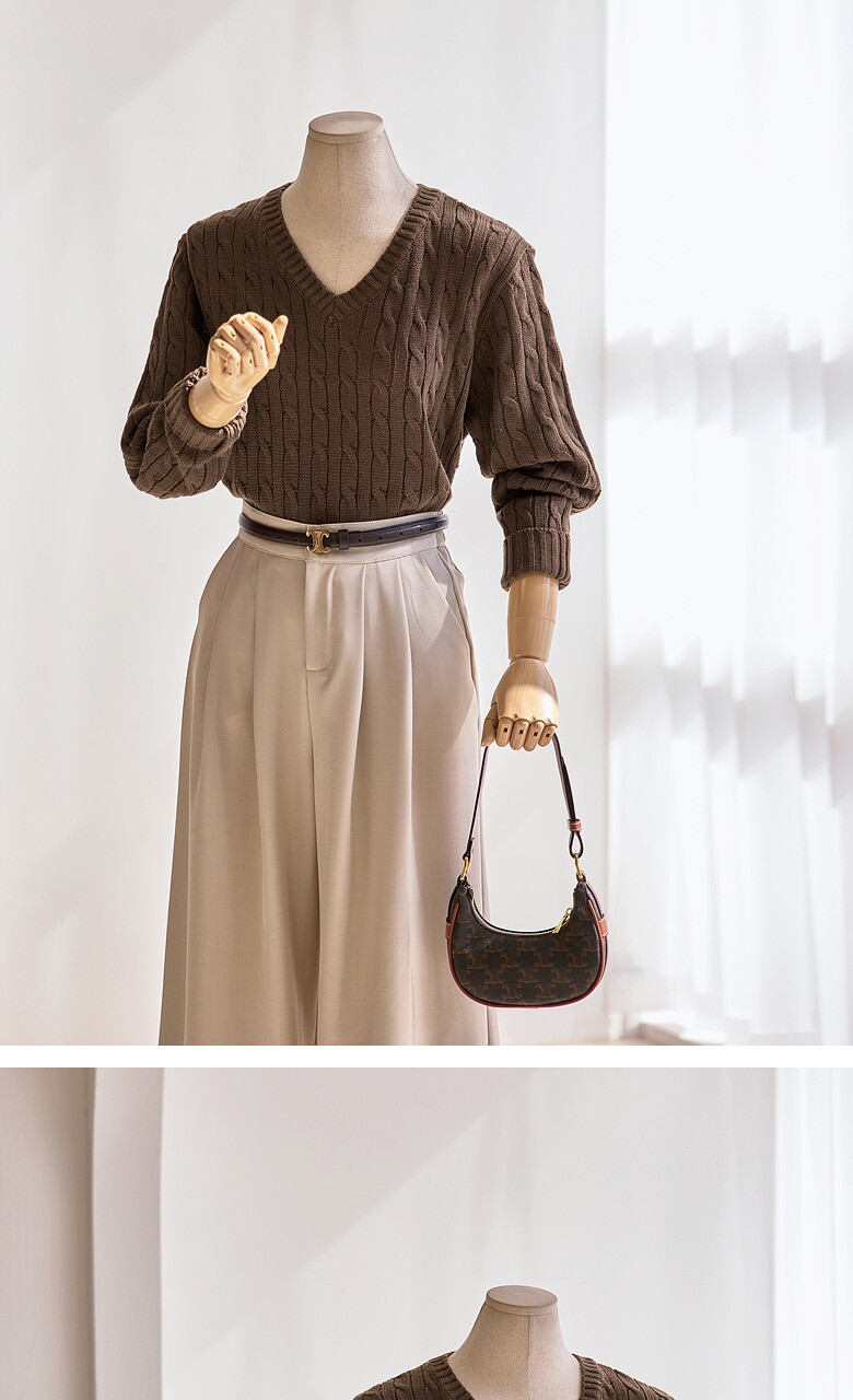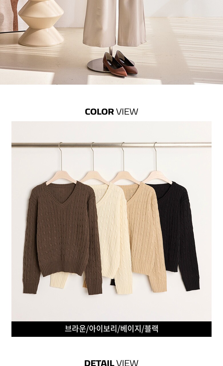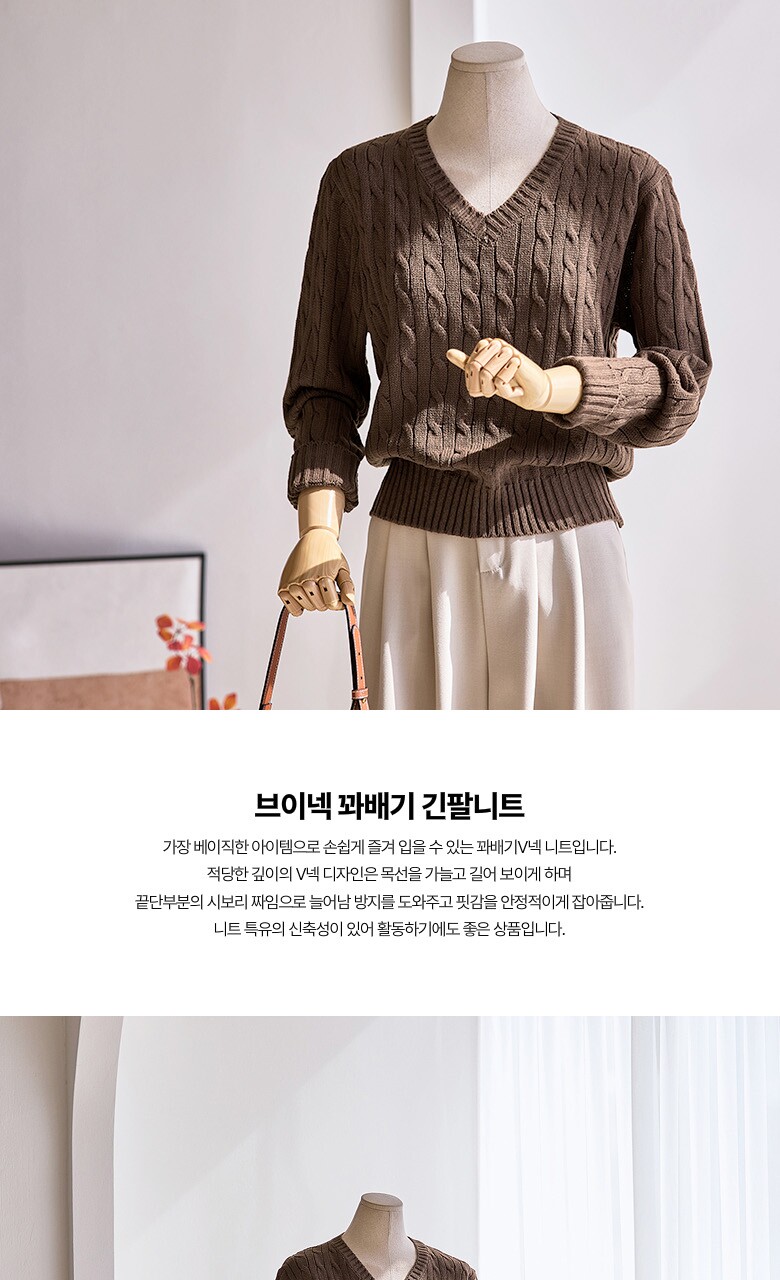 브이넥 꽈배기 긴팔니트_T2509KN131C