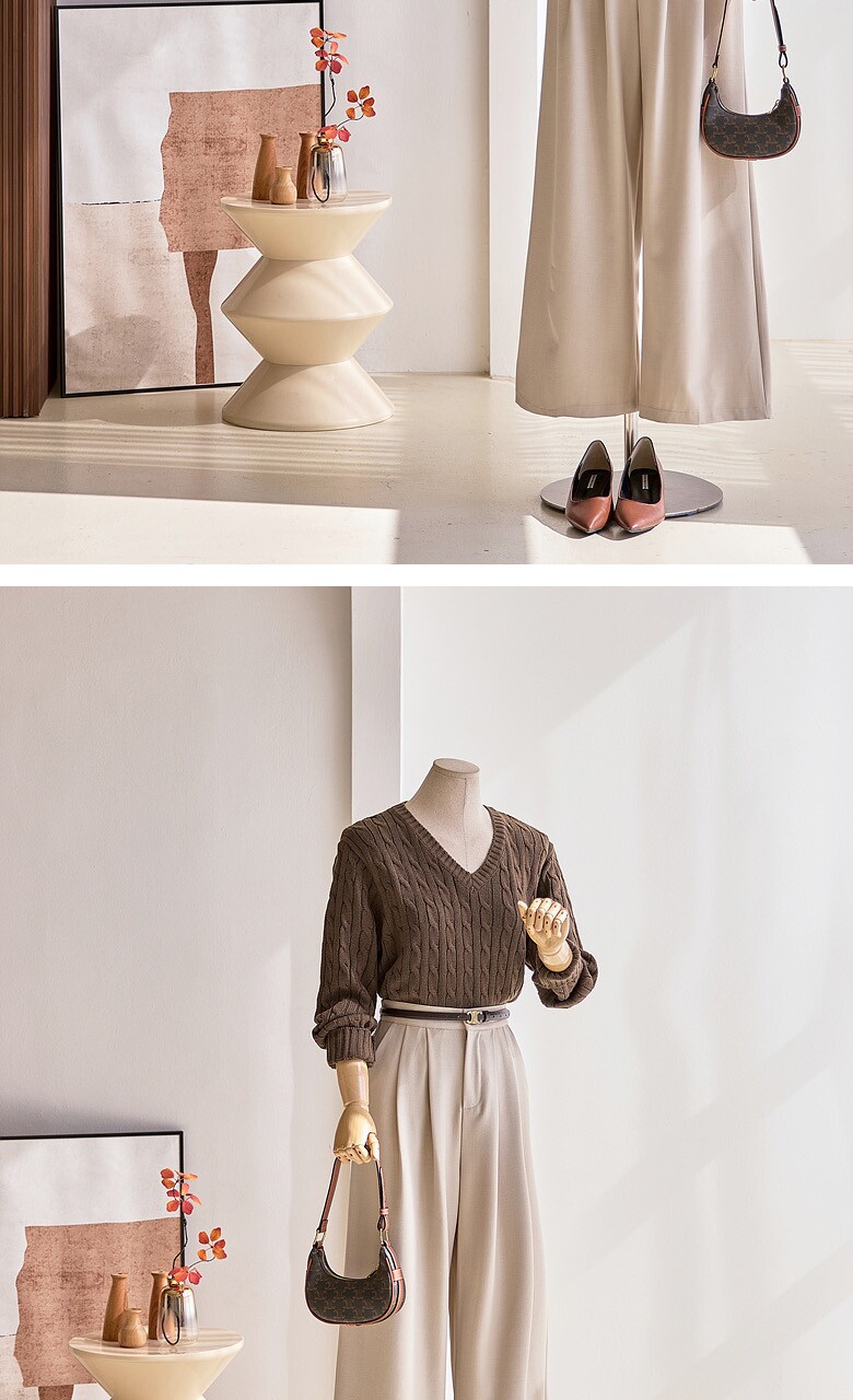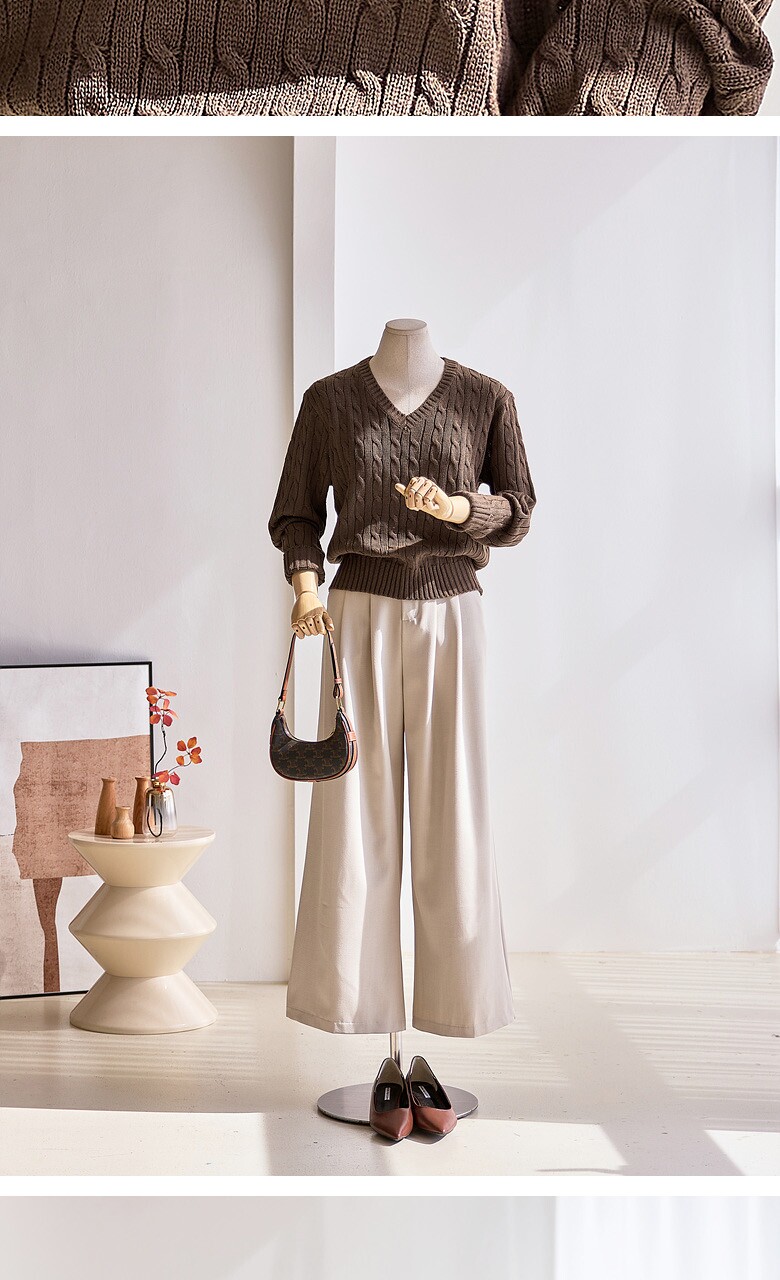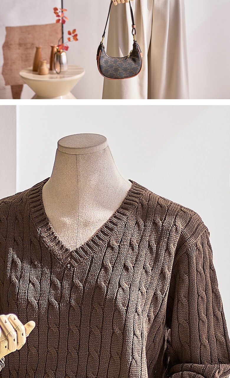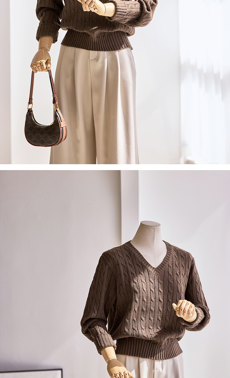 브이넥 꽈배기 긴팔니트_T2509KN131C