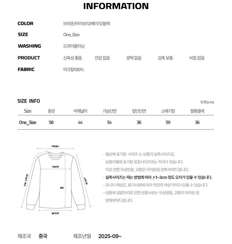 1. 제품 소재 (섬유의 조성 또는 혼용률을 백분율로 표시, 기능성인 경우 성적서 또는 허가서) | 아크릴100% |