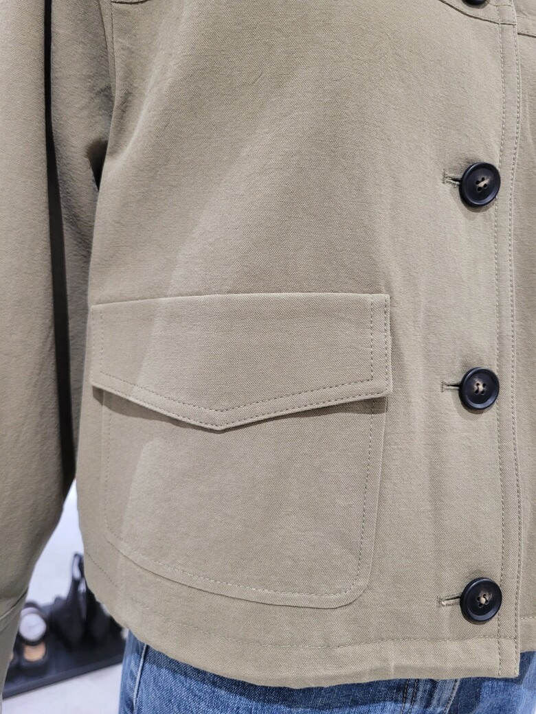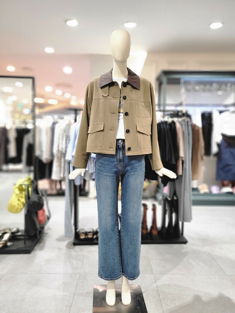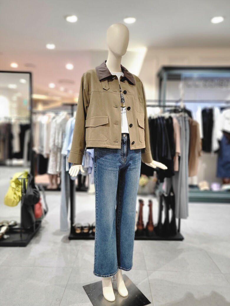 - 카라넥과 풀버튼 여밈으로 단정한 아웃핏을 선사하고,