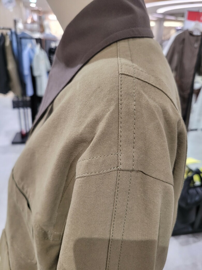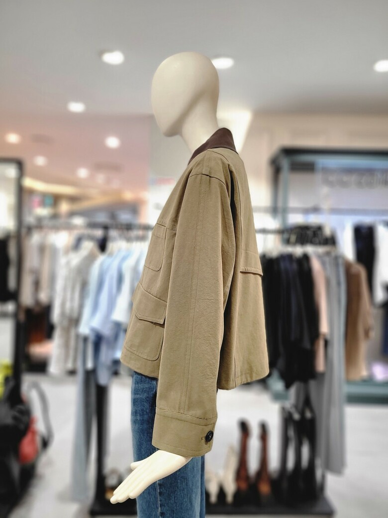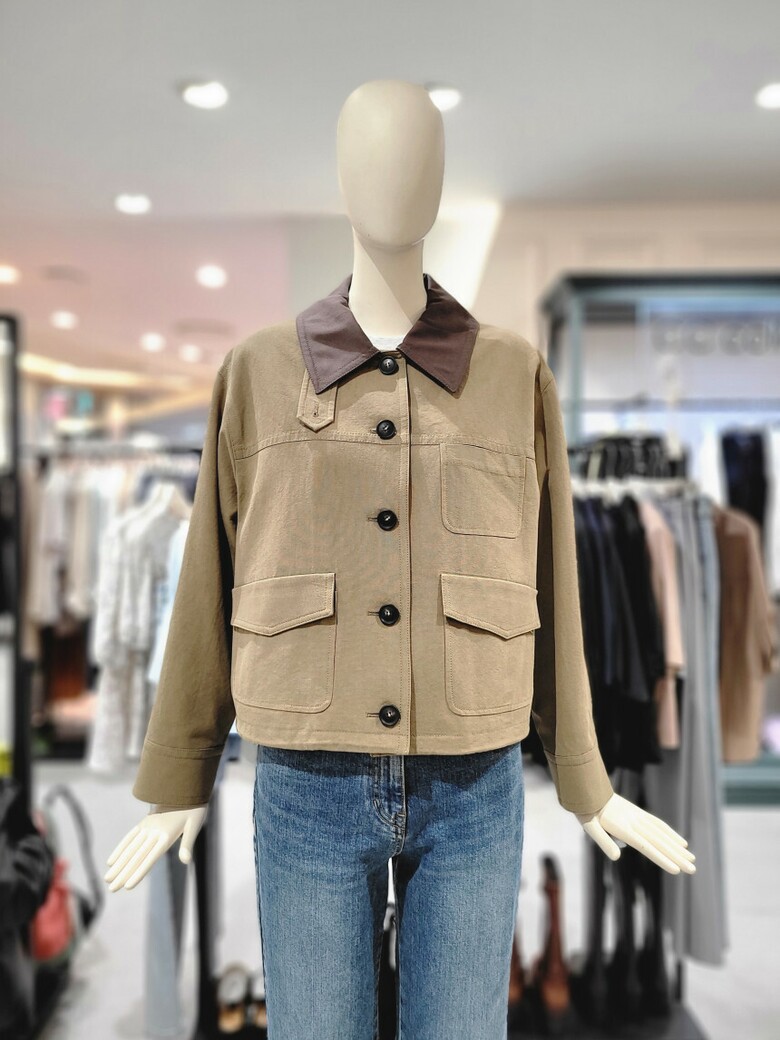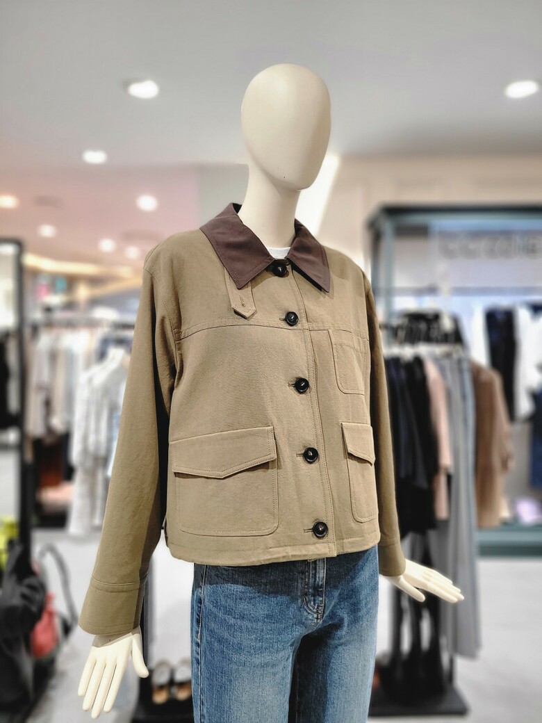- 컬러블록 카라 디자인으로 포인트를 준 자켓입니다.