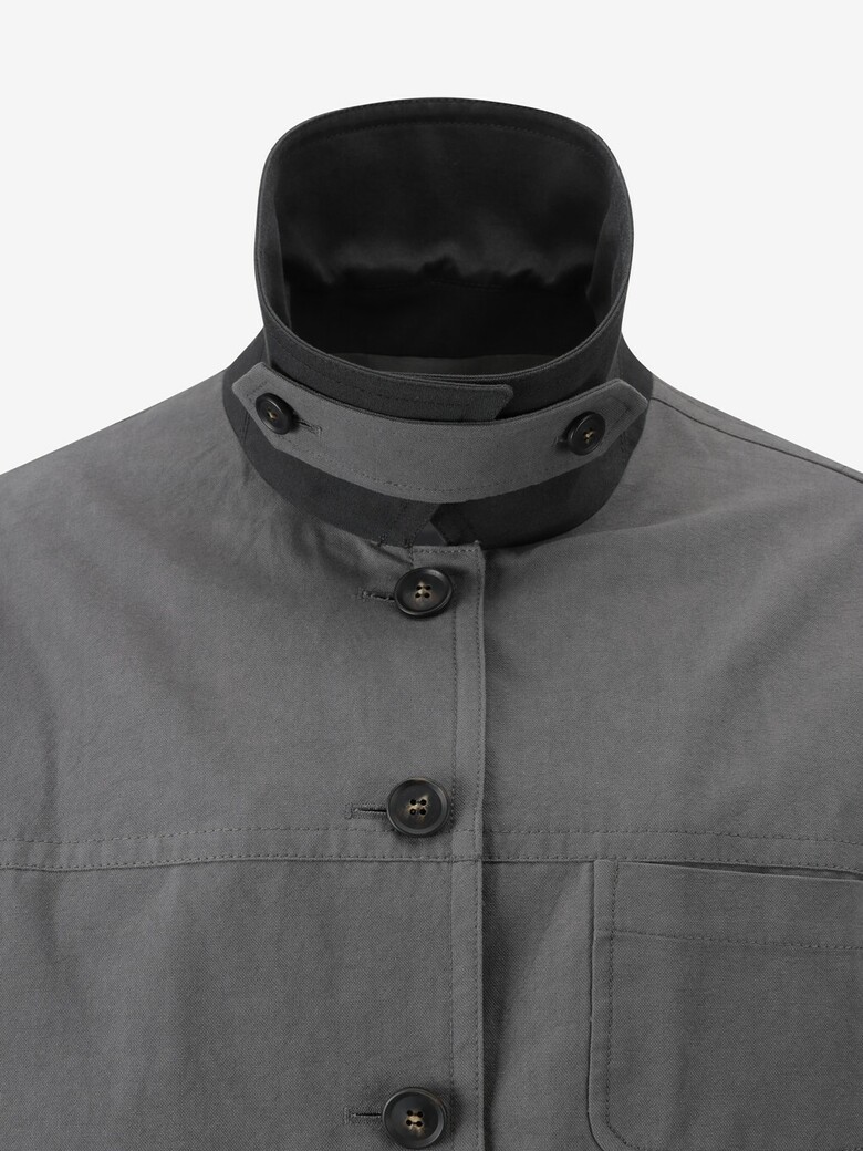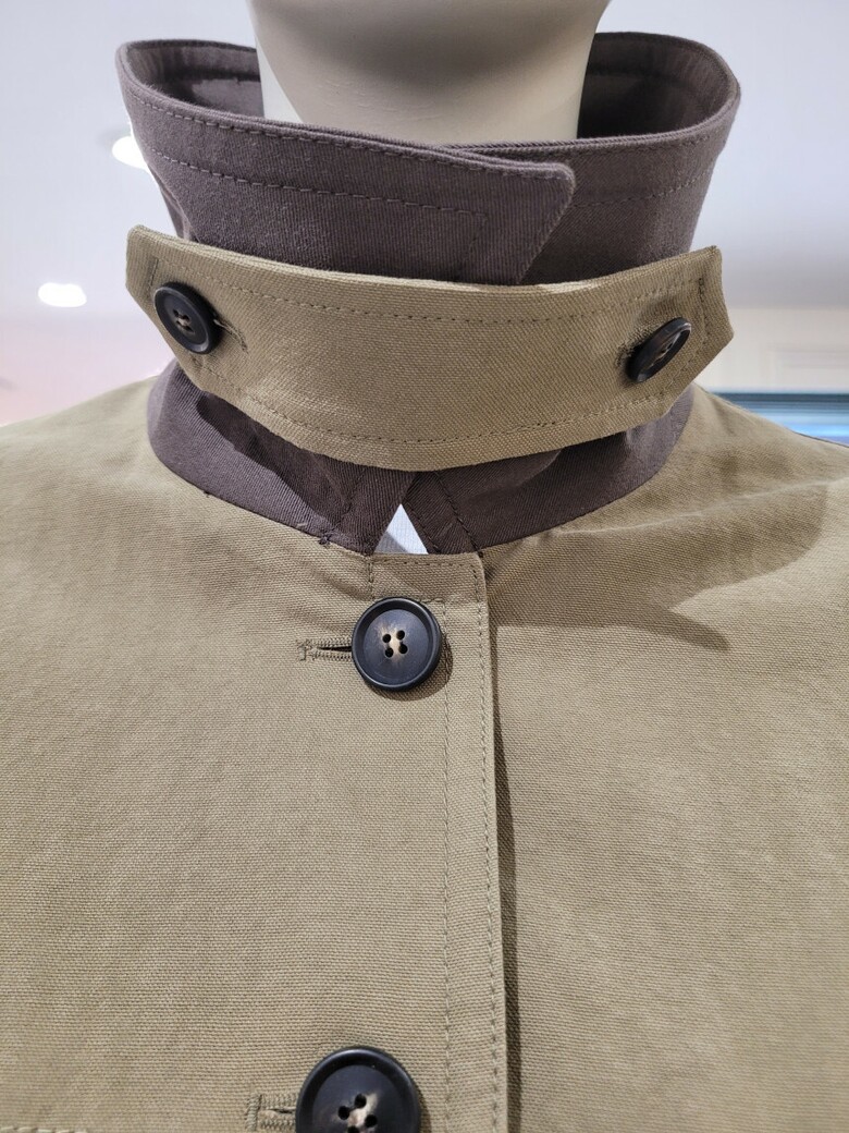 넥 부분 스트랩과 버튼으로 하이넥 연출이 가능합니다.