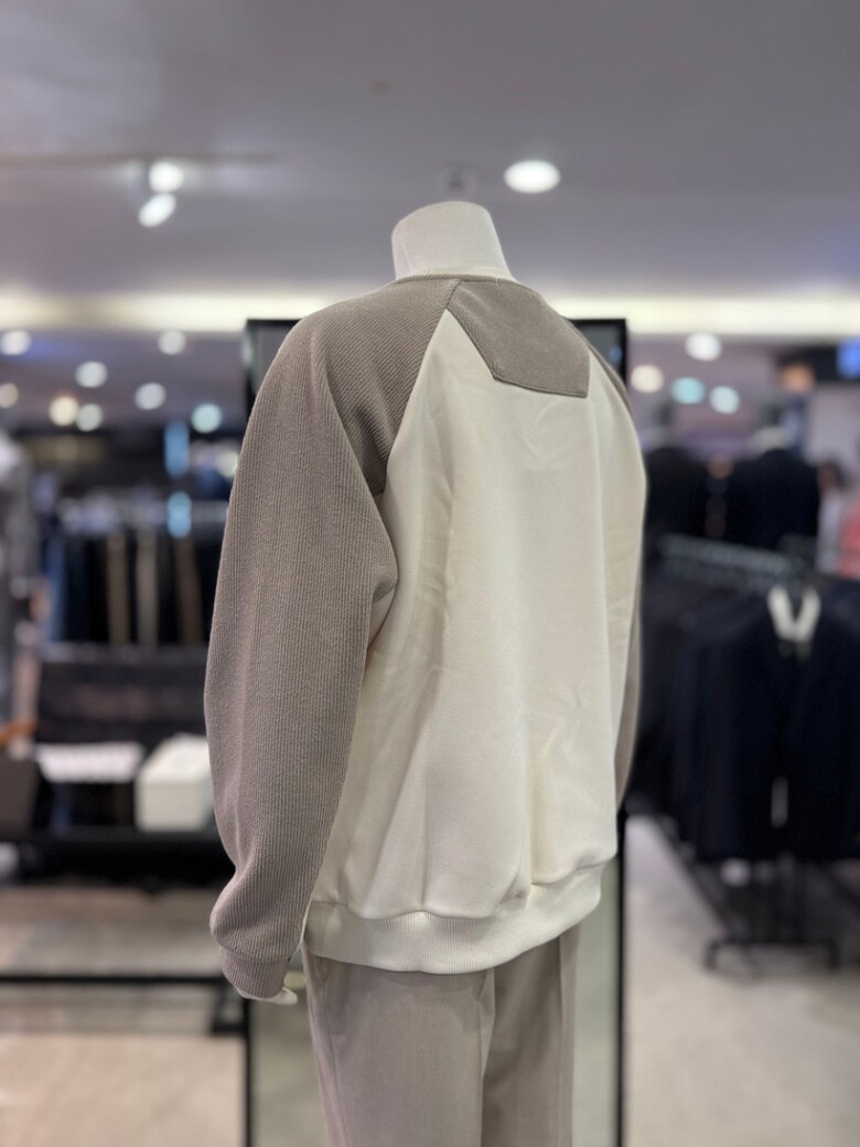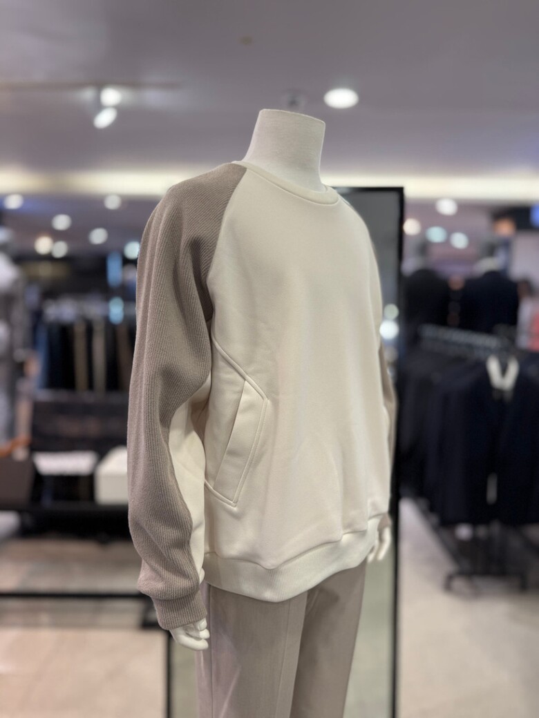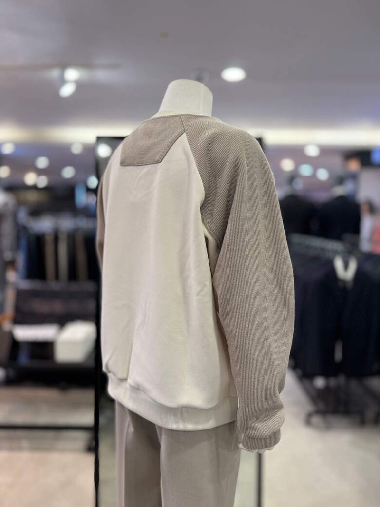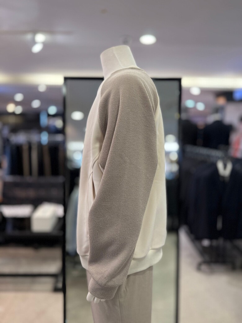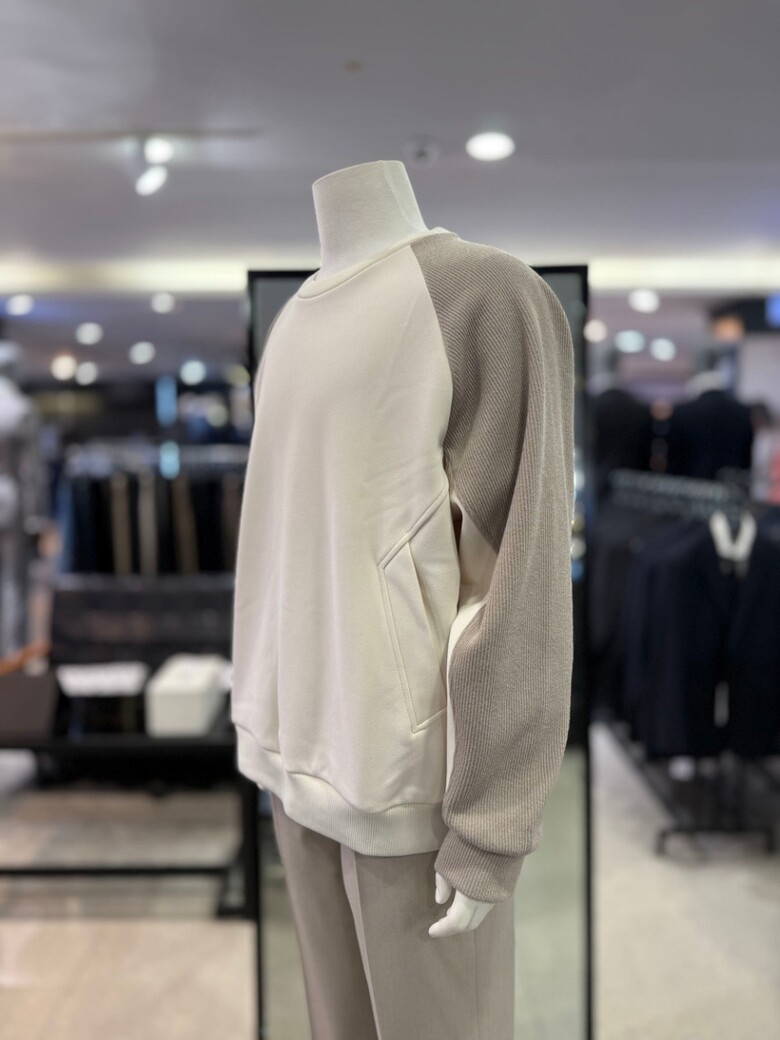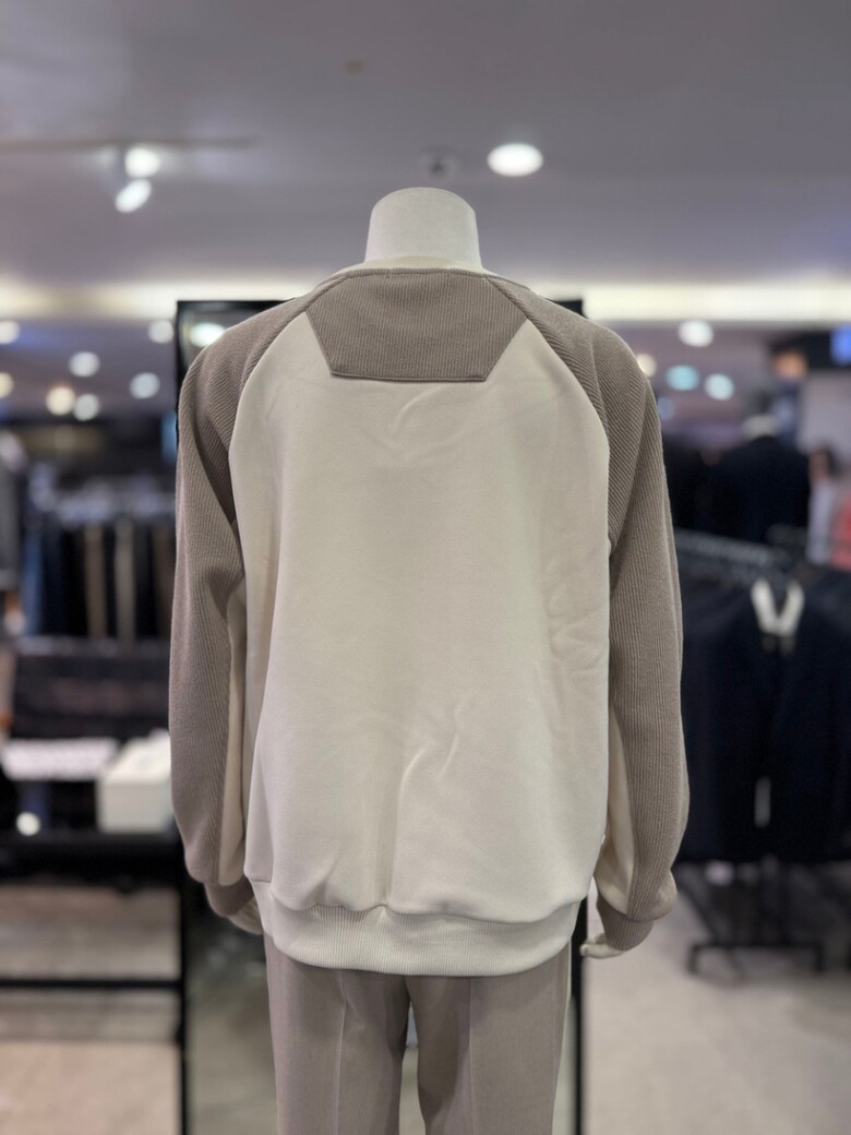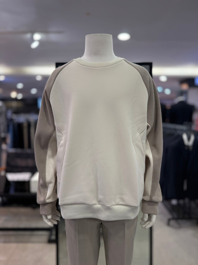 베이지 라인 절개 배색 오버핏 맨투맨